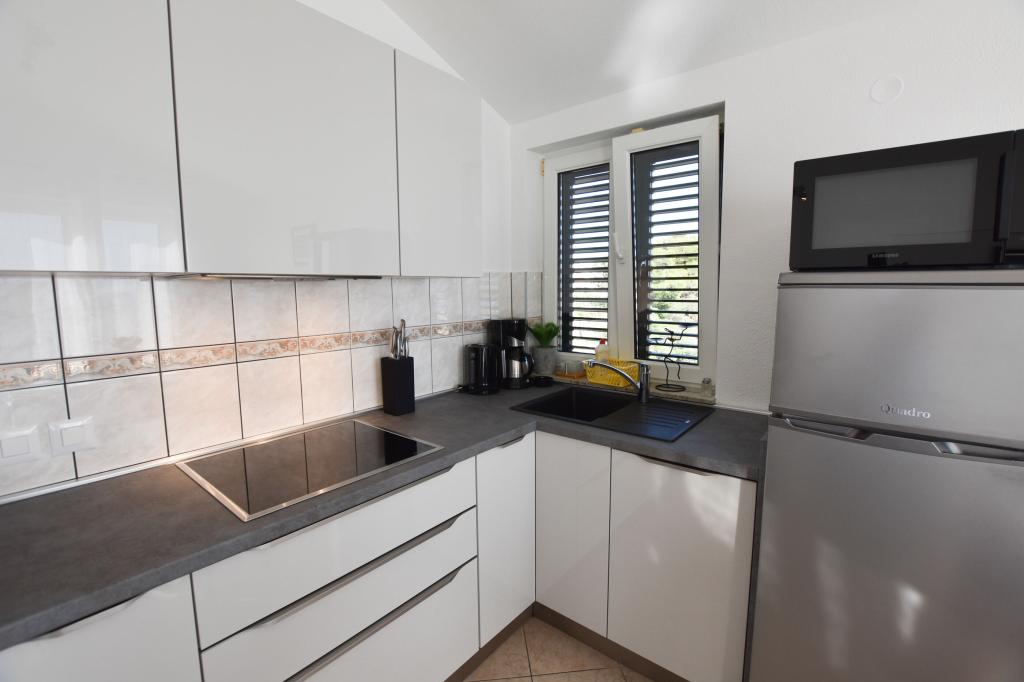 Apartmány Carmen se nacházejí podél hlavní silnice, cca 150 m od oblázkové pláže Velika Raduca. Do středu města, pouhých 5 minut chůze. Dům má 6 apartmánů, všechny pěkně zařízené a vybavené vším, co potřebujete pro příjemnou dovolenou (klimatizace, satelitní TV, internet, parkování před domem).