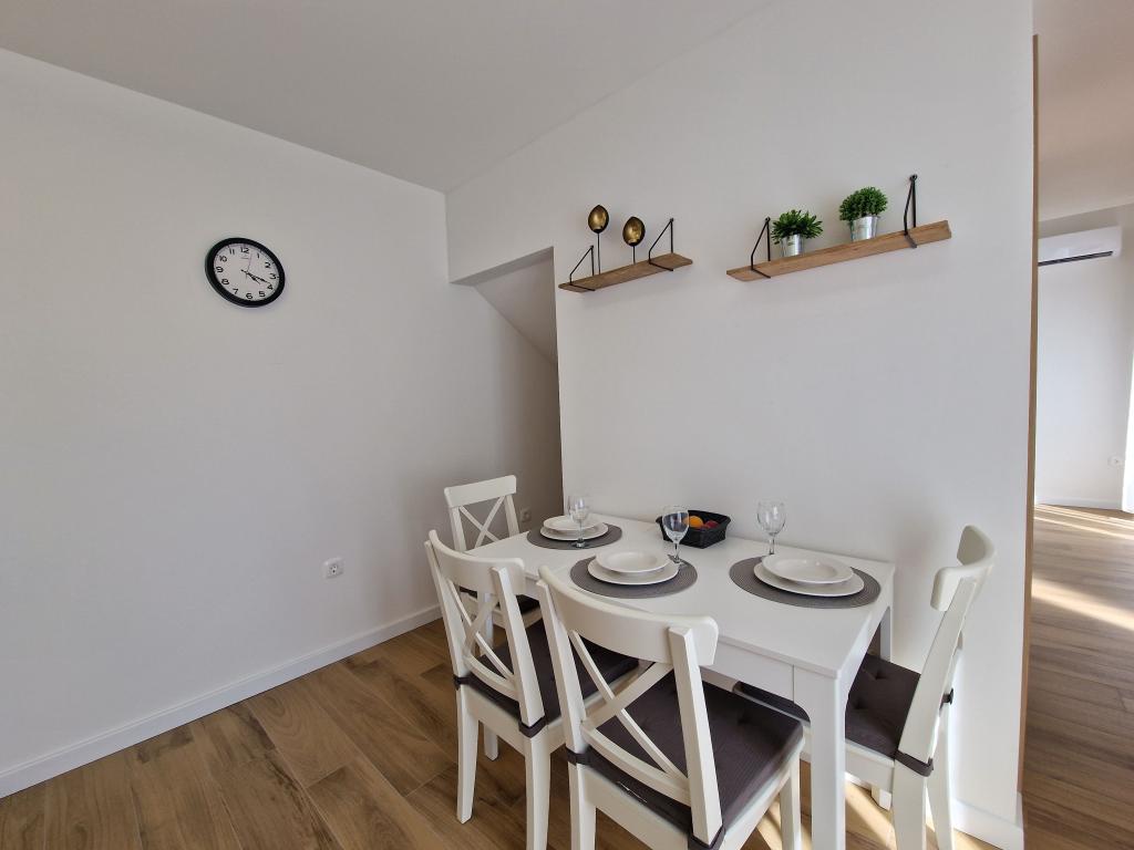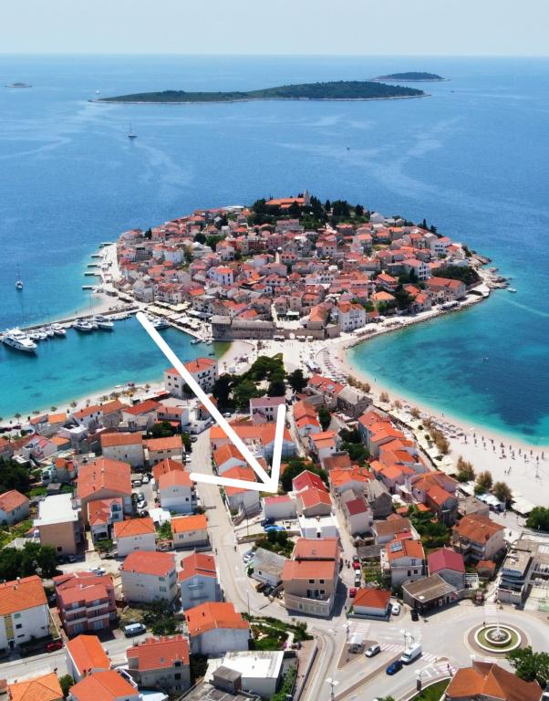 Moderní dvoupatrový apartmán Miamare v Primoštenu se nachází 100 metrů od centra města a pláže (1-2 minuty chůze).Skládá se z kuchyně, obývacího pokoje a toalety v přízemí a dvou ložnic a koupelny v prvním patře. podlaha. Je vybaven třemi klimatizačními jednotkami a internetovým připojením.Před apartmánem je zajištěno bezplatné parkovací místo.Veškerá nezbytná občanská vybavenost se nachází v bezprostřední blízkosti ve vzdálenosti méně než 100m (obchod, lékárna, tržnice, restaurace, řeznictví , pošta...).