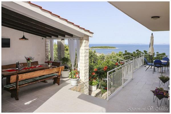 Vítejte v apartmánech Miliša-Vesna! Užijte si klid a krásu našeho krásného Primoštenu! Apartmány Miliša se nacházejí v klidné části Primoštenu. 100 metrů od oblázkové a skalnaté pláže a 600 metrů od centra, kam se dostanete pěšky za 8 minut. Naše apartmány mohou ubytovat od 2 do 16 osob. Každý apartmán je vybaven satelitní TV, klimatizací a wifi. Každý apartmán má parkování ve dvoře. Na zahradě s velkou společnou terasou můžete grilovat. Apartmány Miliša vám poskytují krásný výhled z každé terasy našeho bytu a dávají vám možnost užít si západ slunce v Primoštenu, což je nejkrásnější a nejromantičtější západ slunce.