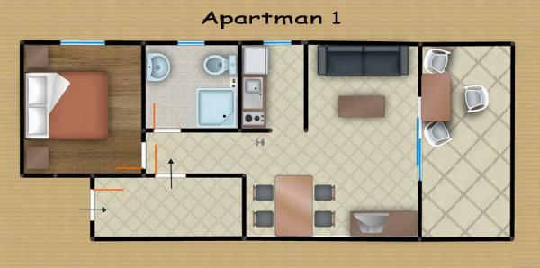Komfortní apartmány pro dvě až tři osoby. S terasou, klimatizací, parkováním a satelitní TV a připojením k internetu 400 m od pláže a moře v klidném a relaxačním prostředí. V ceně: Klimatizace, Parkování, WI-FI, TV, SAT, Pobytová taxa, ložní prádlo, ručníky, nádobí na přípravu a konzumaci jídel, příbory.