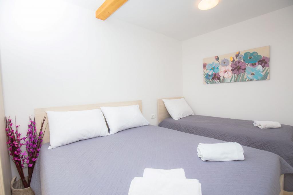 Nově zrekonstruované apartmány ve staré části Primoštenu, v přísném centru, obklopené restauracemi, obchody se suvenýry a obchody. Apartmány (cca 55m2) mají 2 ložnice, kuchyň, koupelnu se sprchou a balkon. Má klimatizaci, SAT TV, pračku. Parkování je zajištěno mimo starou část, asi 300 metrů od apartmánu.