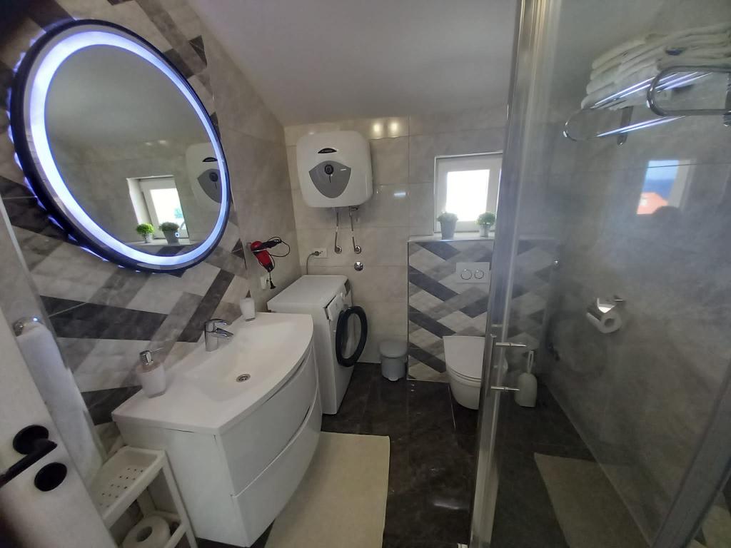 Toto je recenze někoho, kdo cestoval celé chorvatské náklady na jih od Zadaru… Je to jako byste přišli navštívit své vzdálené příbuzné, které všichni ve vaší rodině zbožňují! Moje žena a já jsme měli na cestě do Chorvatska tolik problémů, že jsme ani nevěděli, jestli se tam dostaneme nebo ne, ale všechny naše potíže zmizely po jediné noci s Franjem a Verou! Nebuďte překvapeni, když vás přivítají desítky druhů pálenky, domácí klobásy nebo třeba krásně připravený gril s množstvím místních masných výrobků… Apartmány jsou neposkvrněné, je zde naprosto vše, co potřebujete, výhled je úžasný a umístění je perfektní, jen pár minut od pláže a starého města. Veru, Franjo, přeji ti vše nejlepší a prosím, kontaktujte nás, pokud někdy navštívíte Banja Luku nebo pokud budete potřebovat jakoukoli laskavost! Jste pro nás víc než hostitelé… PS Lepe ti je, lepe ti je Zagorje zelene…