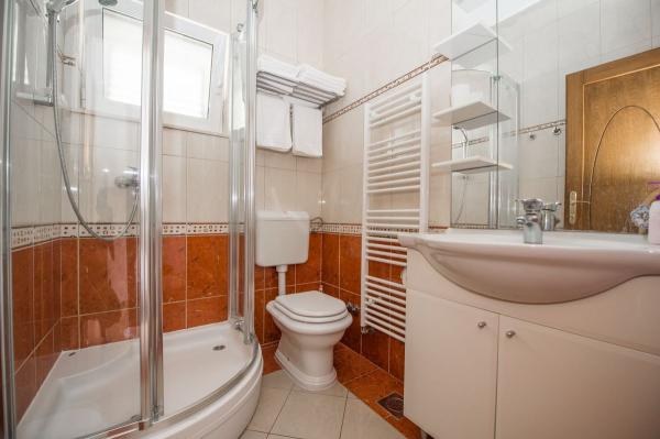 Exkluzivní vila Emma, nový kamenný dům, přímo u moře. Nachází se v Primošten, v klidné zátoce Porat. Jen pár minut chůze vede k oblázkovým plážím a do centra. Všechny luxusní apartmány mají velkou krytou terasu s krásným výhledem na moře. V domě je 5 apartmánů: Apartmány číslo 1, 2, 3 mají 2 ložnice, obývací pokoj s patrem, 1 koupelnu. Apartmány číslo 4 mají 1 pokoj, obývací pokoj s patrem, 1 koupelnu. Apartmány číslo 5 mají 3 pokoje, obývací pokoj s lůžkem, 2 koupelny. Každý apartmán má vlastní vchod a parkoviště. Klimatizace v každém pokoji a obývacím pokoji. Moderní vybavení, plně vybavená kuchyň, koupelna, satelitní / TV. Ideální čas příjezdu 14:00 a odjezd 10:00.