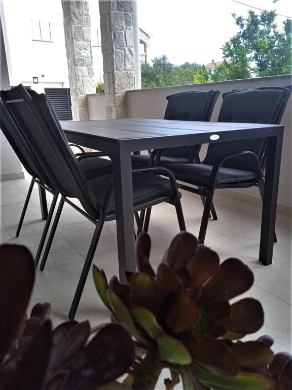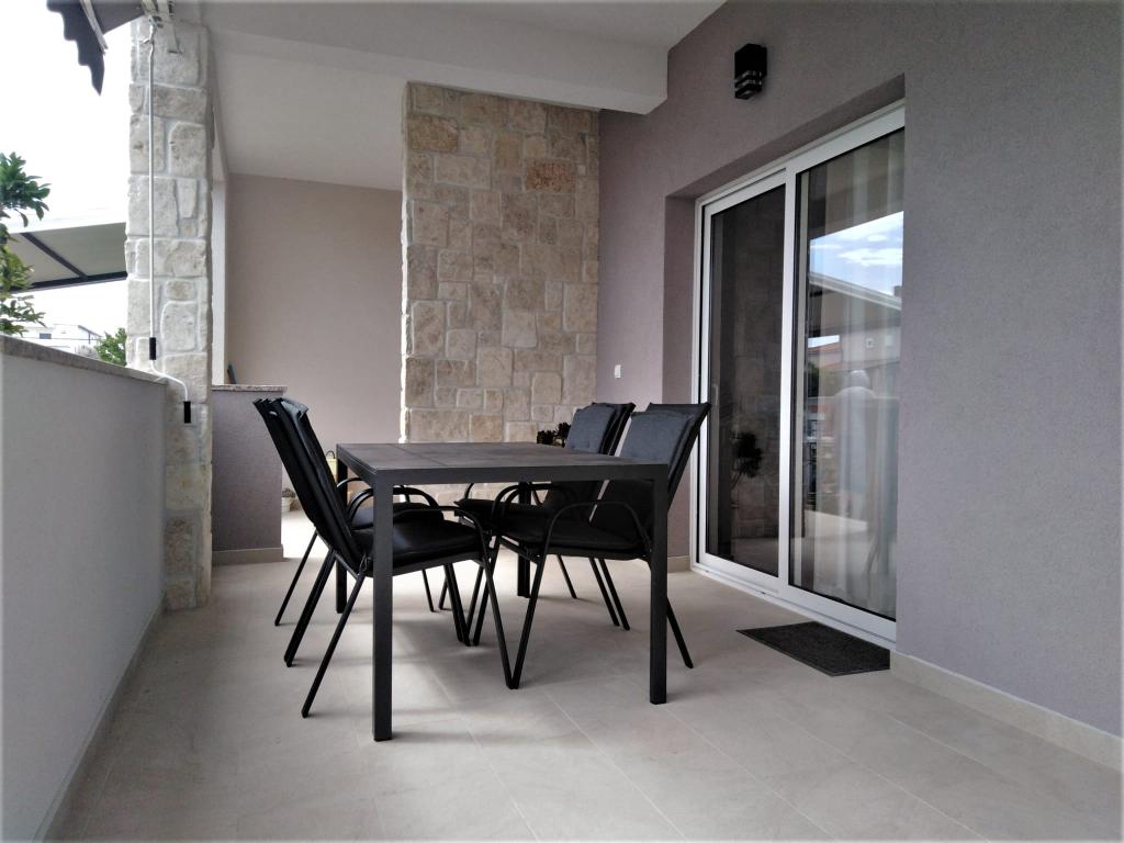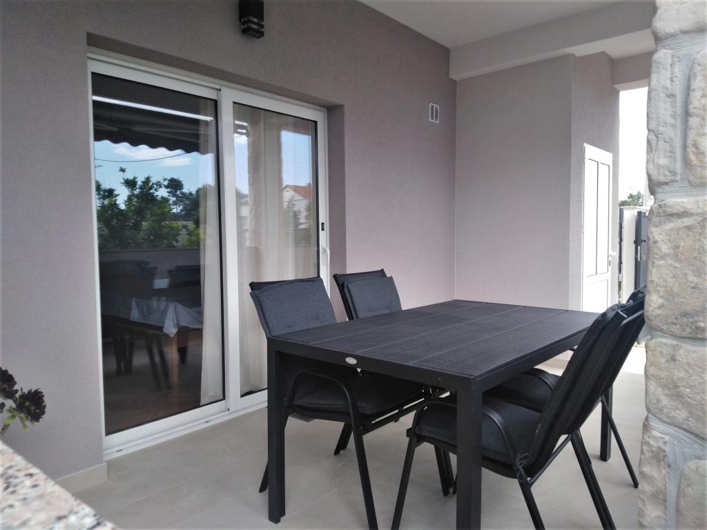 Apartmán ALEN (40 m2) se nachází v přízemí soukromého, samostatně stojícího domu obklopeného zahradou. Skládá se z 1 velké ložnice (20m2) s manželskou postelí, přistýlkou a dětskou postýlkou, kuchyně s obývacím pokojem s rozkládací pohovkou 135 x 190 cm, koupelny s WC a krásné zastřešené terasy 12 m2 před apartmánem. Je zcela nový a vybavený vším, co potřebujete pro příjemnou dovolenou: klimatizace, WI-FI internet, SAT-TV, mikrovlnná trouba, varná konvice, toustovač, kávovar, gril. Cena zahrnuje: ložní prádlo, ručníky, kuchyňské utěrky a utěrky (výměna každých 7 dní), elektřinu, vodu, WiFi internet a pobytovou taxu. Byt je 300 m od krásné písečné pláže a 100 m od supermarketu.