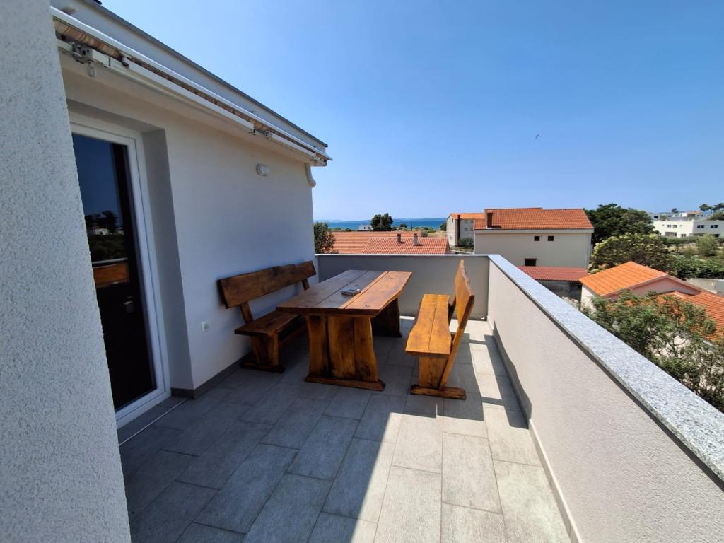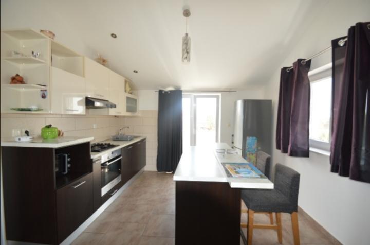 Prostorný podkrovní apartmán se dvěma terasami s výhledem na moře, 5 minut chůze od pláže a 15 minut od centra. Má prostorný dvůr a parkoviště s bezplatným grilem.
