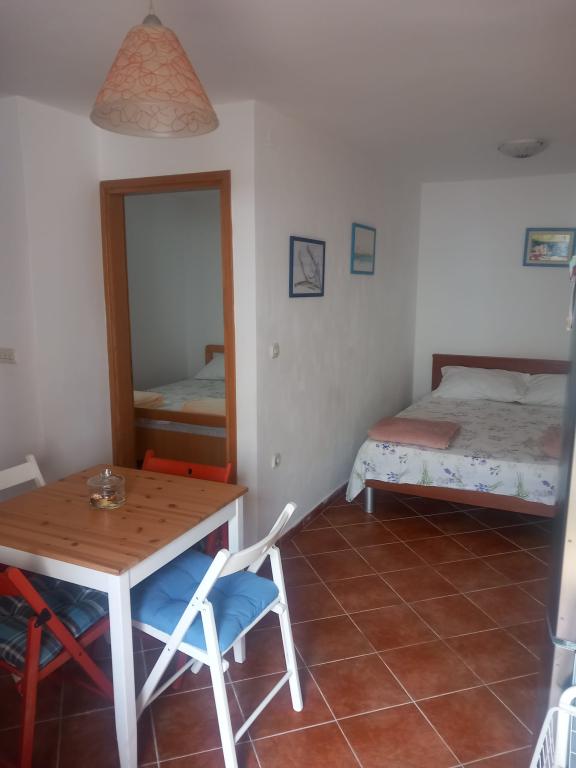 Apartmán o rozloze 37 metrů čtverečních v Privlace. Skládá se ze dvou pokojů: ložnice s manželskou postelí a pokoje, který zahrnuje obývací pokoj (s další velkou postelí) a kuchyň s jídelnou. Koupelna má toaletu a sprchový kout. Klimatizace a TV jsou v obývacím pokoji. Apartmán má dvůr se stolem a židlemi, velkou markýzou, venkovní sprchou a grilem. Nejbližší pláž je vzdálená 100 metrů, vchod je písčitý, vhodný i pro nejmenší děti, a hned vedle pláže se nachází dětský park s vybavením a volejbalovým hřištěm. Podél promenády se nachází mnoho pláží přizpůsobených dětským potřebám a jedna zcela písčitá. Apartmán je pět minut od obchodu, pošty, pekárny a lékárny. Nedaleko se nachází Zadar (18 km od Privlaky), Nin (5 km), Zaton (6 km) a četné zařízení pro děti i dospělé. Apartmán má Wi-Fi. Nabízíme 3 jízdní kola pro dospělé.