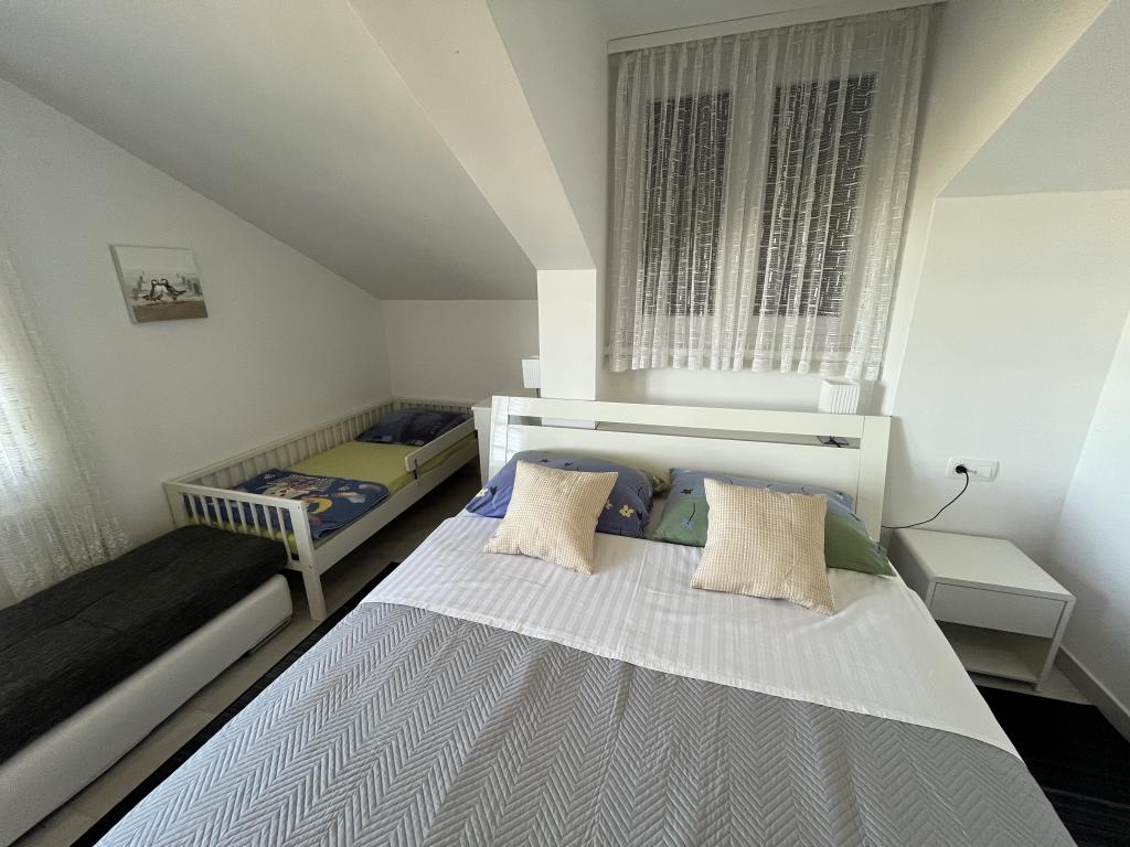 Apartmány Abela, nové apartmány v rodinném domě se samostatným vchodem, plně zařízené pro příjemnou dovolenou. Skládají se z kuchyně s obývacím pokojem, jedné ložnice, koupelny, velké terasy s otevřeným výhledem na moře. Menší apartmán má výhled na moře, ale nemá terasu. Toto je ubytování pro vás, pokud potřebujete klidnou dovolenou u písečných pláží s teplým mořem.