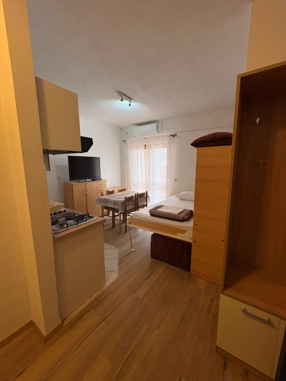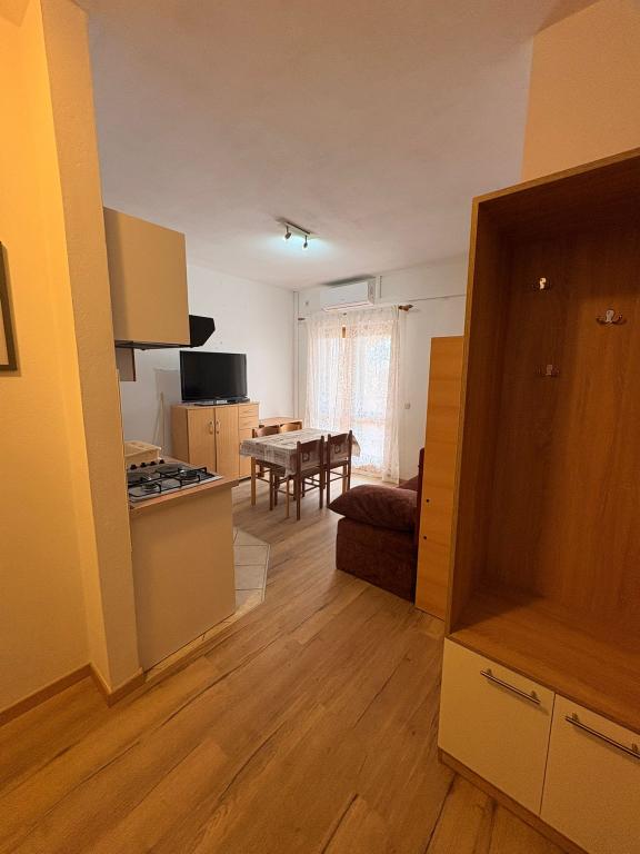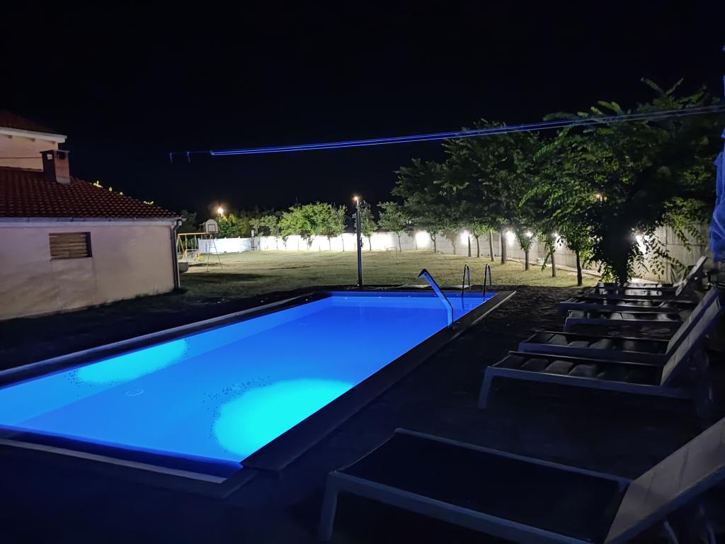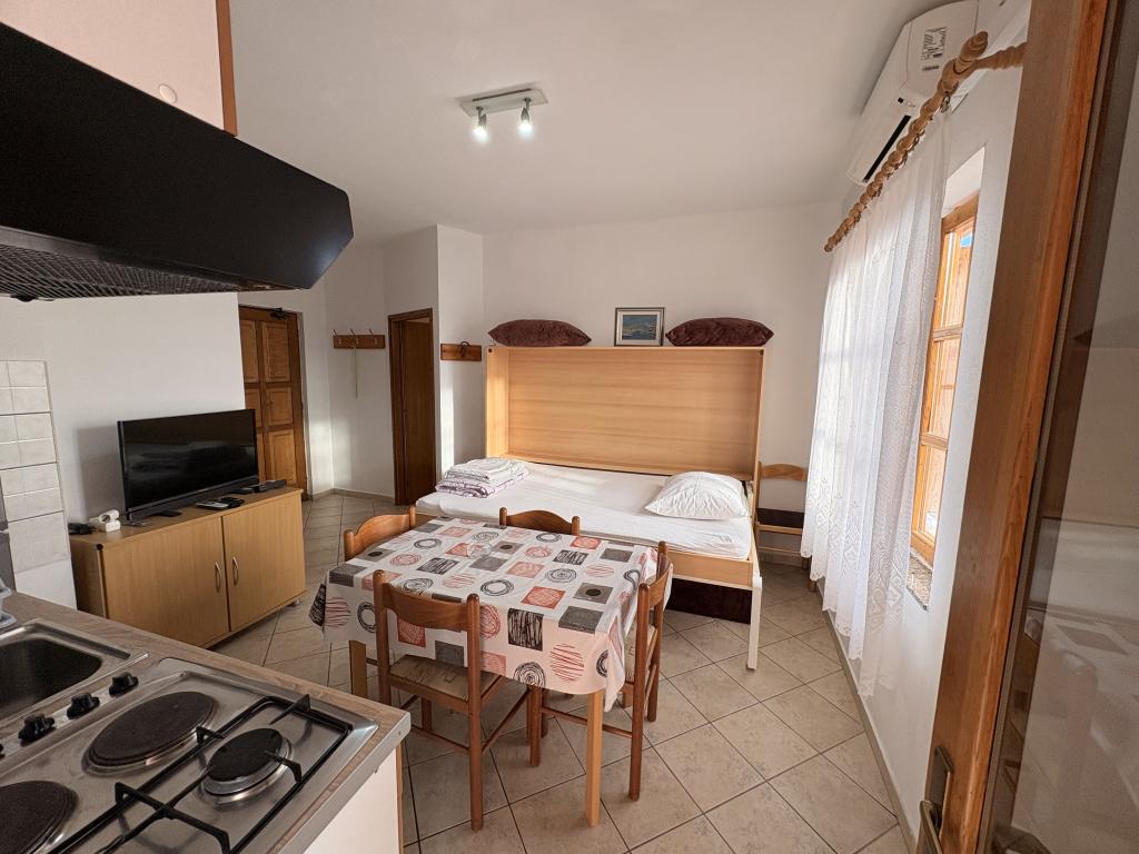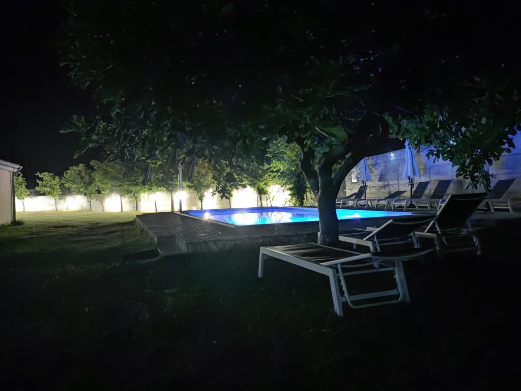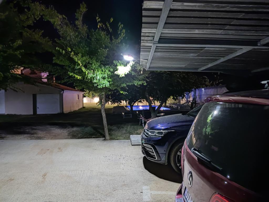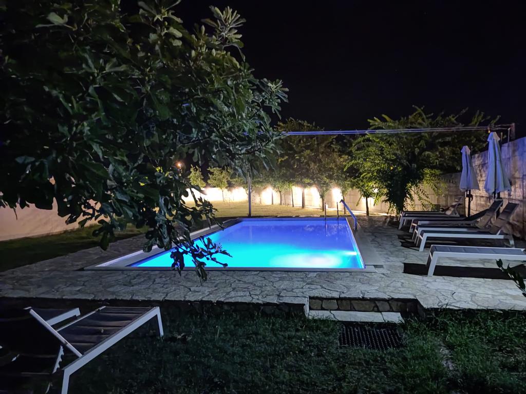 V našem dvoře jsme pro každý apartmán zařídili a rezervovali jedno kryté parkovací místo. Máme také parkovací místa pro několik aut na apartmán. V pomocné budově mají hosté k dispozici tavernu pro setkávání a přípravu jídla s potřebným stolním vybavením. Bazén je přetékající ze dvou stran a vybavený dvěma druhy vodních masáží a je hostům k dispozici od 8:00 do 22:00 hodin. Lehátka a slunečníky jsou zahrnuty v ceně apartmánu. Pevná stříška o délce 12 m poskytuje bezpečnou ochranu před sluncem. Dva posilovací stroje jsou hostům k dispozici od 8:00 do 22:00 hodin a jsou zahrnuty v ceně apartmánu. Pračka se nachází v pomocné budově a je hostům k dispozici od 8:00 do 22:00 hodin a je zahrnuta v ceně apartmánu. Hostitelé jsou vždy k dispozici a ochotni pomoci s přípravou jídla z grilu.