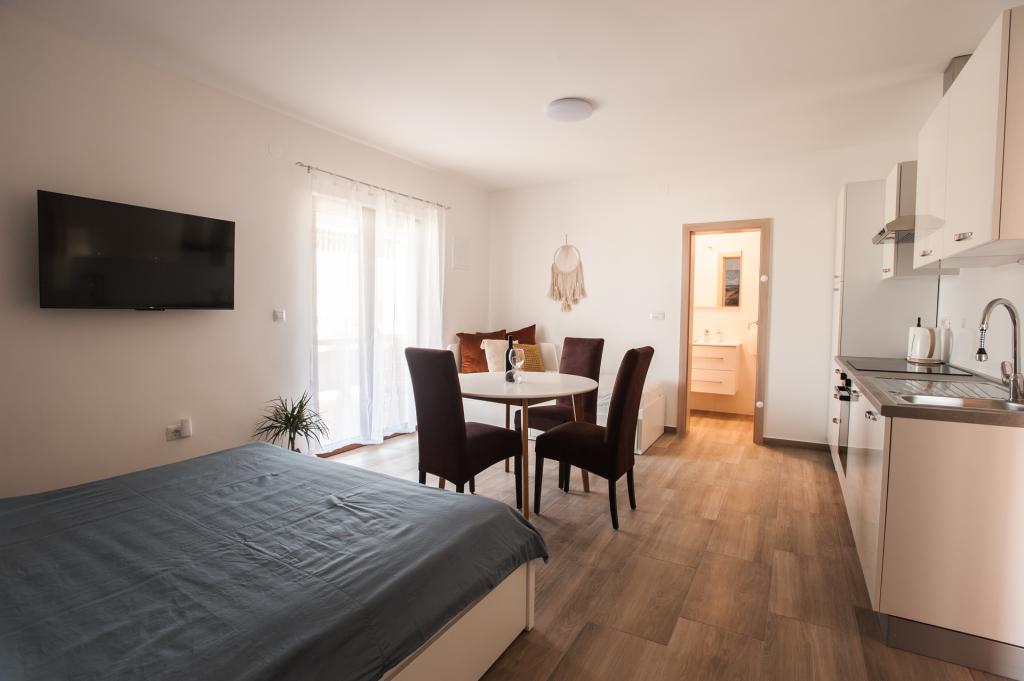 Apartmán LaPrivlaka se nachází pouhých 200 metrů od moře. Tento apartmán se nachází v prvním patře soukromého domu a nabízí výjimečný komfort a soukromí. Hostům je k dispozici samostatný vchod, který vede na prostorný balkon vybavený pohodlným posezením a sušákem na prádlo. Uvnitř bytu naleznete plně vybavenou kuchyň s bohatou sadou nádobí, jídelna nabízí příjemný prostor pro stravování s TV. Vlastní koupelna je vybavena sprchovým koutem, pračkou, toaletou a vysoušečem vlasů. Ložnice apartmánu vyzařuje prostornost a pohodlí, s pohodlnou manželskou postelí a přistýlkou o rozměrech 80x200 cm, kterou lze využít jako pohovku nebo třetí lůžko dle potřeb hostů. Klimatizace umožňuje nastavit teplotu podle vašich preferencí. Hosté tohoto apartmánu mají přístup na bezplatné soukromé parkoviště, které jim poskytuje bezpečné a cenově dostupné ubytování pro jejich vozidla. Byt prošel kompletní rekonstrukcí v roce 2023, což znamená, že veškeré spotřebiče jsou nové.