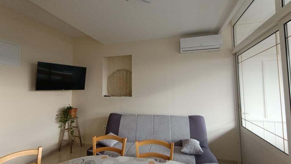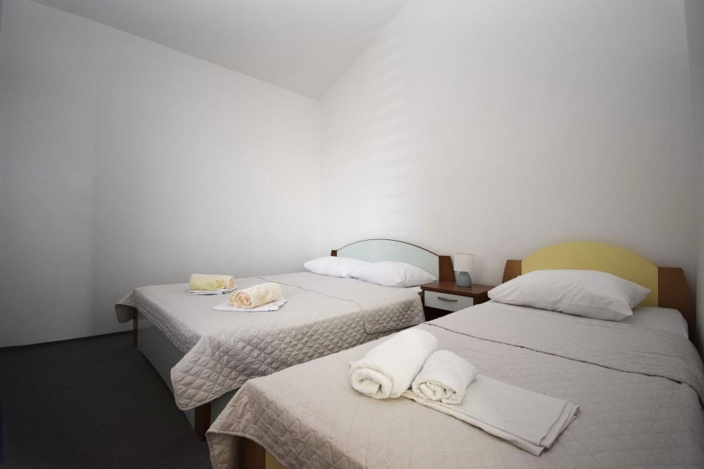 Dům se nachází ve druhé řadě k moři, v klidné vilové čtvrti. Všechny apartmány mají balkon s přímým výhledem na moře. V těsné blízkosti je také sportovní hřiště a dětský park.