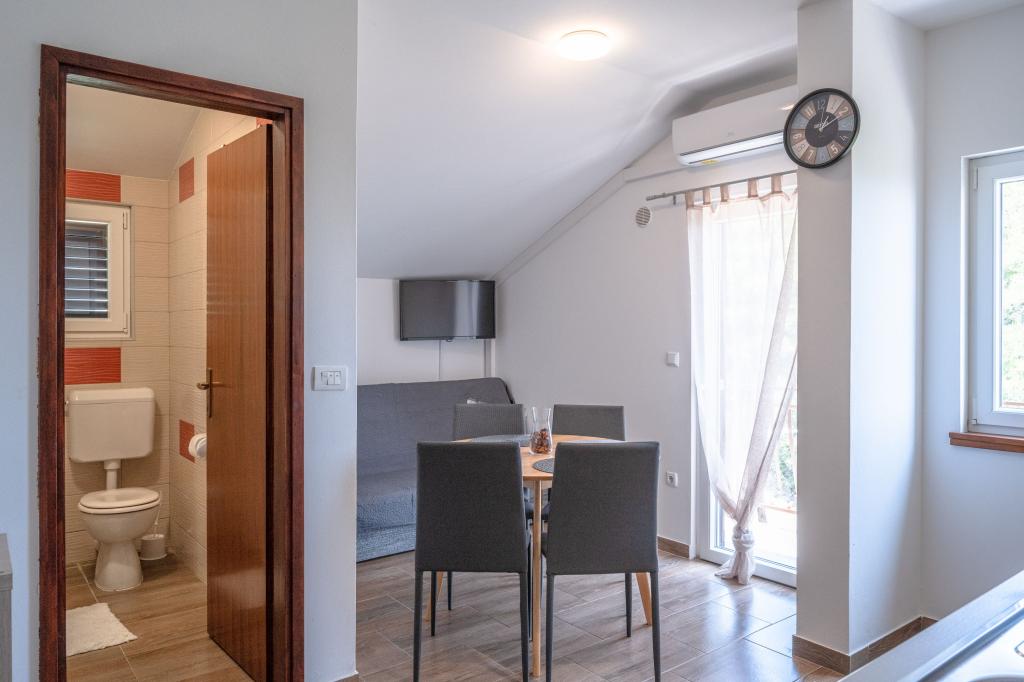 Apartmány Prižba Bumba jsou soukromé ubytování na ostrově Korčula, v městečku Prižba se 3 apartmány. Nacházejí se 100 metrů od pláže. V blízkosti pláže typu žal. Apartmány mají klimatizaci, internet, gril, parkování. Z balkonu je krásný výhled na poloostrov Ratak a malé ostrovy. Nejbližší pláž (m): 100 Typ nejbližší pláže: betonové desky, žal Vzdálenost k nejbližší oblázkové pláži (m): 100 Centrum města (m): 100 Restaurace (m): 100 Obchod (m): 300 Pošta: Blato, 10km Sanitka: Blato, 10km Trajektový přístav: Vela Luka, 17,5 km Apartmán č. 1 je velký apartmán se 2 ložnicemi a klimatizace se nachází v každém pokoji.