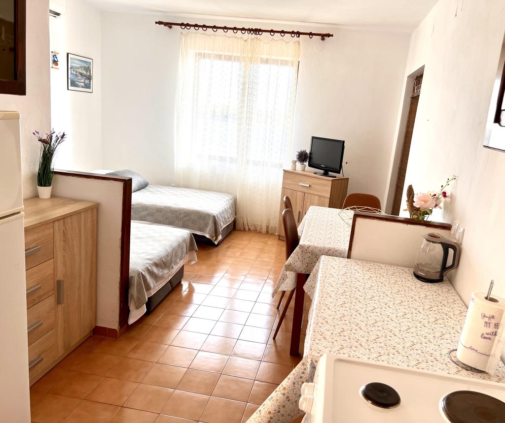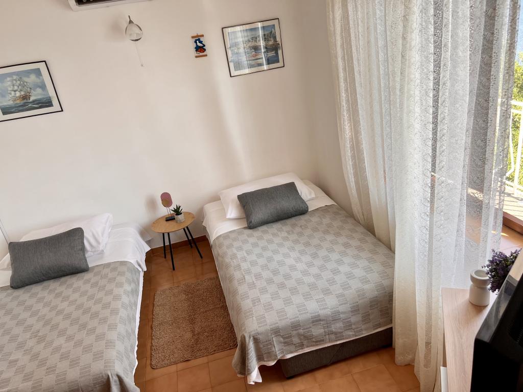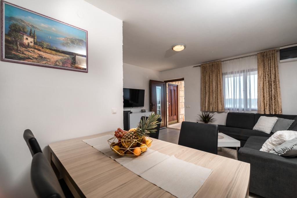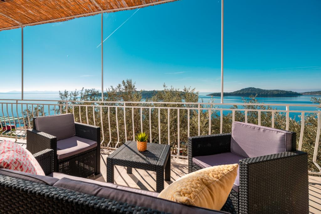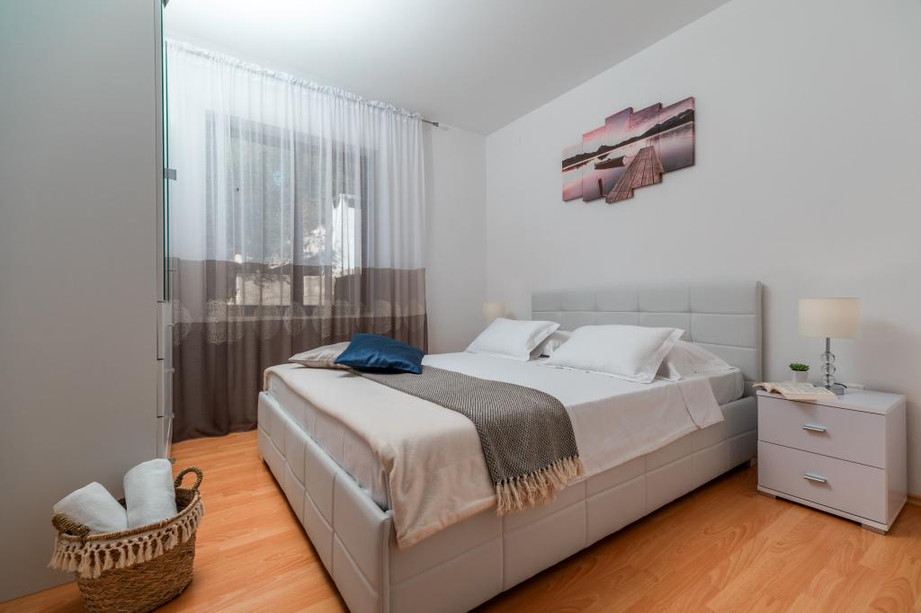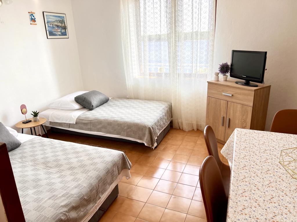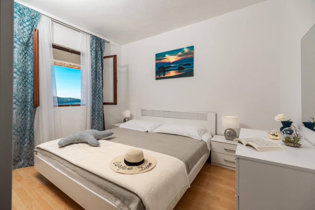 Apartmány Franulović se nachází v klidné oblasti Prišćapac na ostrově Korčula, obklopené borovým lesem. Oba apartmány mají nádherný výhled s krytou terasou na křišťálové moře a ostrovy. Apartmány se skládají z kuchyně s veškerým potřebným vybavením, koupelna a dvě ložnice (manželská postel, 2 postele). , Wi-Fi je zdarma. Soukromá pláž ke schodům je jen 60 m, a mají také možnost využití kotviště pro loď. Byt se nachází v blízkosti veškeré občanské vybavenosti, jako jsou obchody, restaurace, pláže.