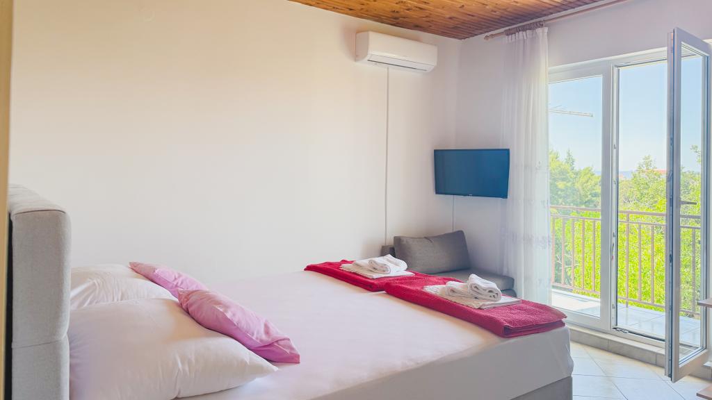 Rosemary Apartments se nachází v klidné části Promajna, daleko od hluku turistů a aut. Cesta na pláž je 300 metrů. Naše apartmány mají vlastní balkon s výhledem na moře, soukromé parkoviště, klimatizaci, 2 ložnice a vlastní kuchyň. Za domem je společná terasa ve stínu.