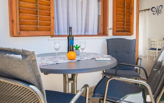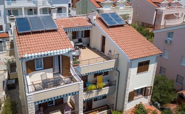 Dům má celkem 6 bytů. Všechny apartmány jsou vybaveny klimatizací a bezplatným Wi-Fi. Před domem je velký dvůr s olivovníky a parkoviště pro všechny naše hosty.