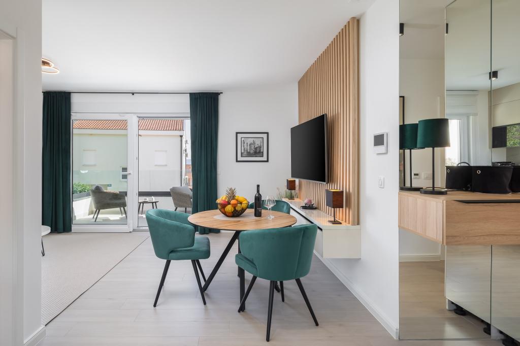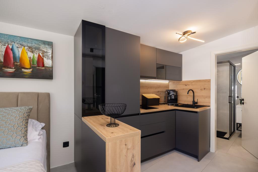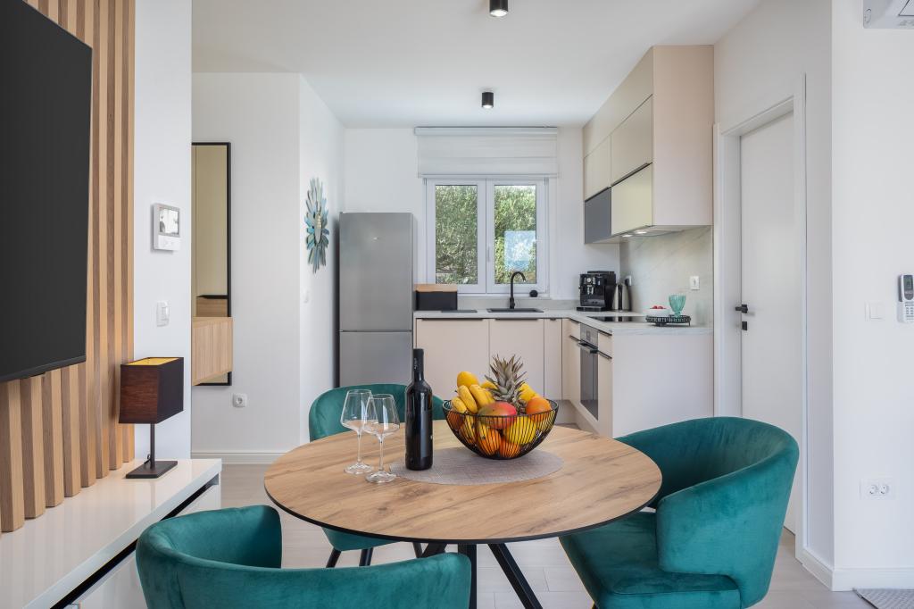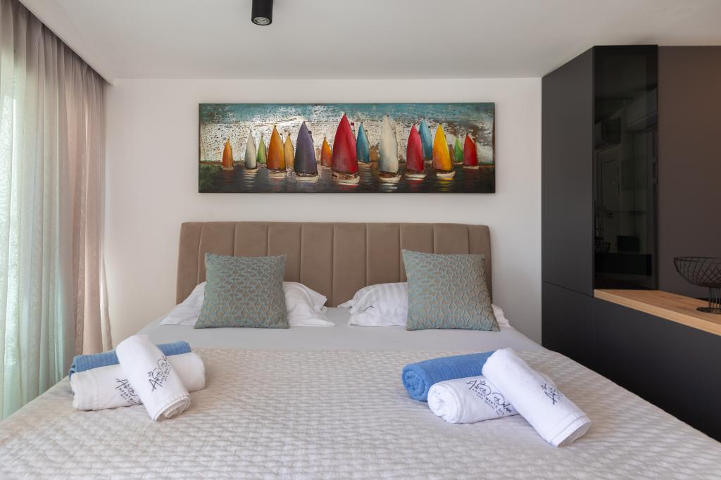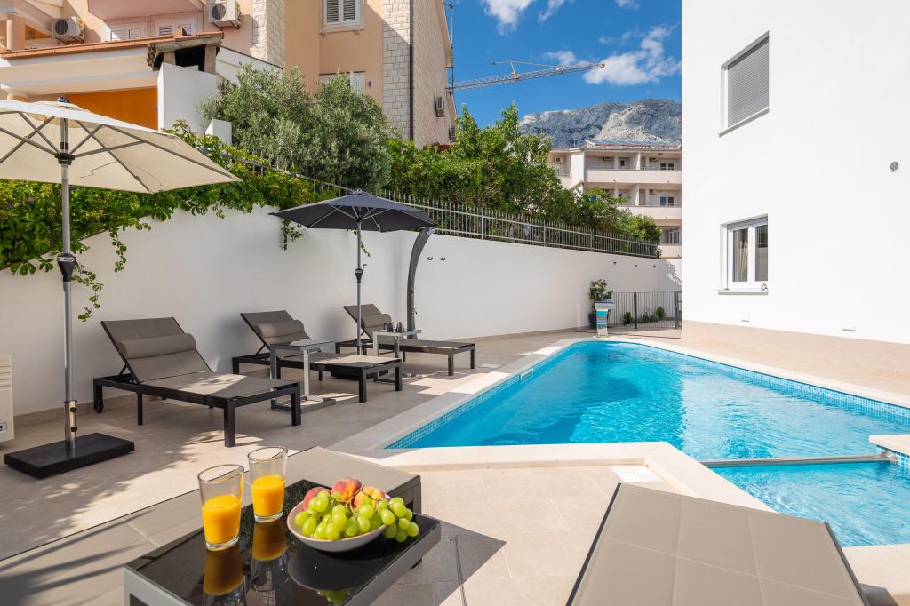 Představujeme vám apartmány A&D Deluxe s bazénem, komfortní ubytovací jednotky umístěné v docházkové vzdálenosti od moře, pouhých 300 metrů. Každý apartmán nabízí dokonalou kombinaci komfortu a luxusu. Apartmán A1 se 2 ložnicemi, 2 koupelnami a prostornou terasou nabízí částečný výhled na moře a je ideálním místem k odpočinku pro rodiny nebo malé skupiny. Hosté mají navíc přímý přístup do bazénu, který jim umožňuje vychutnat si občerstvení a další zábavu. Apartmá A2, také se 2 ložnicemi a 2 koupelnami, má také přístup k bazénu, což hostům umožňuje užít si další zábavu a relaxaci. Apartmán A3 s jednou ložnicí a koupelnou má také přístup k bazénu a je ideální pro páry nebo menší rodiny, které hledají odpočinkovou dovolenou u moře. Všechny apartmány jsou plně vybaveny, včetně kuchyní, soukromého parkoviště, klimatizací a chytrých televizorů, což zajišťuje komfort a pohodlí během vašeho pobytu. Užijte si luxus soukromého bazénu a blízkost krásných pláží v těchto apartmánech.