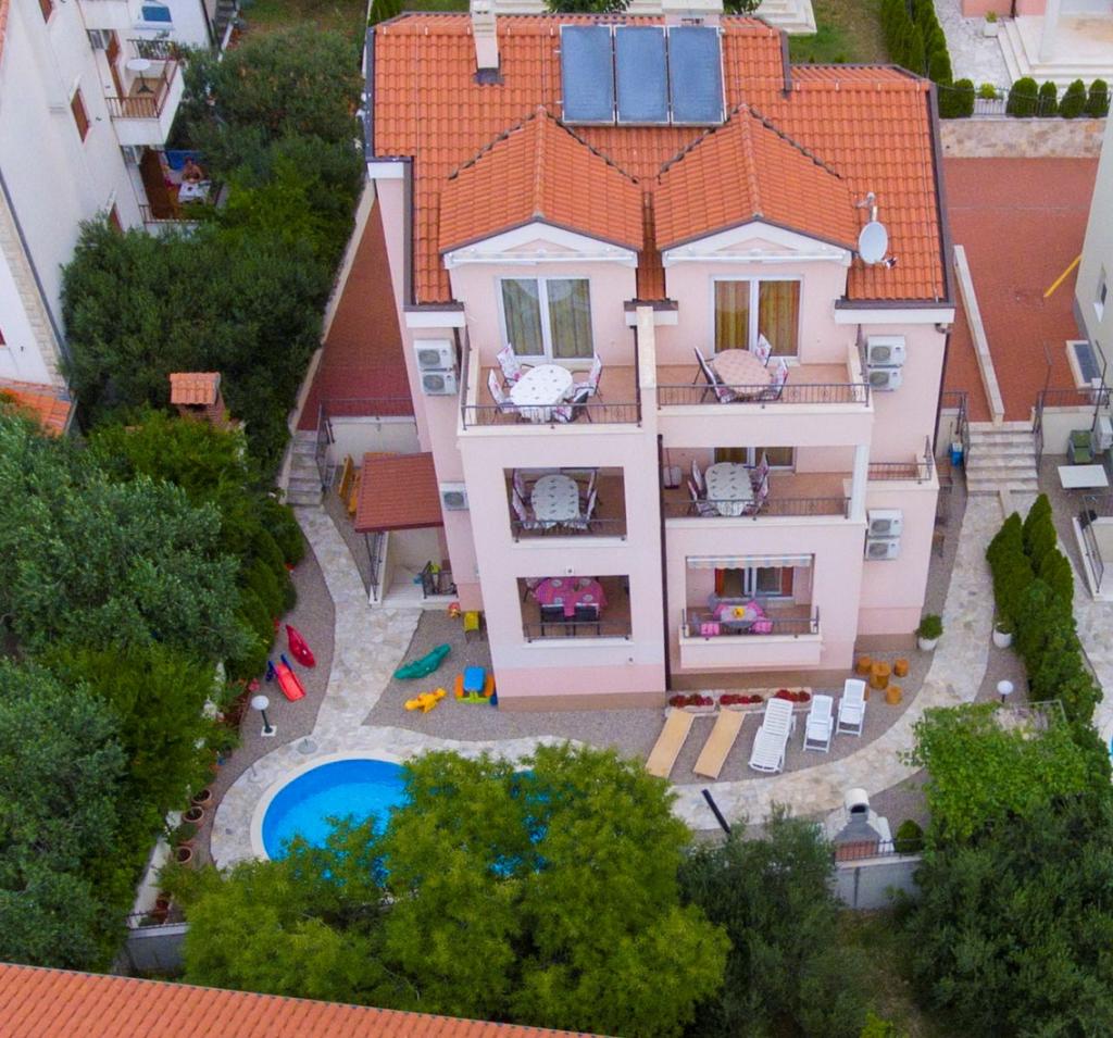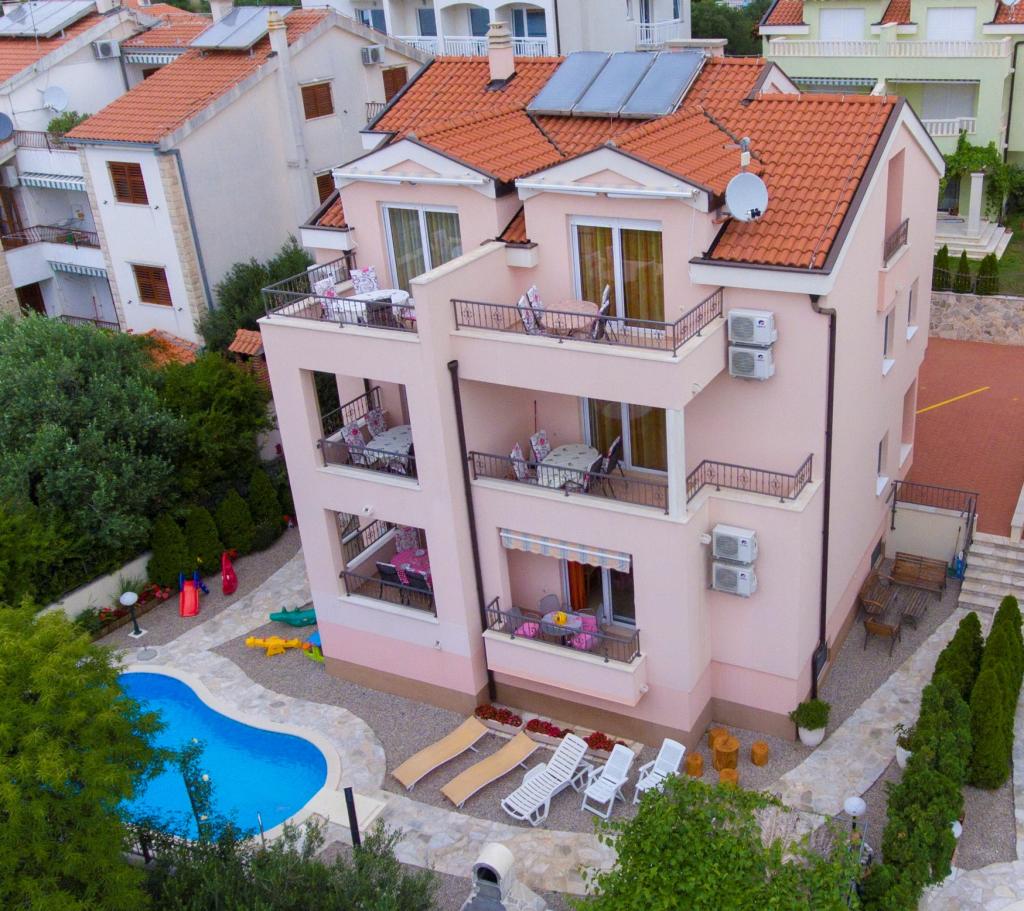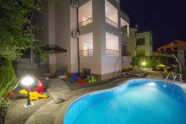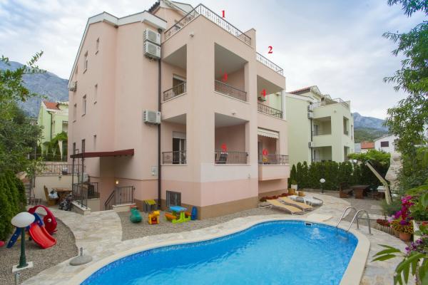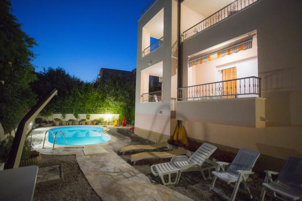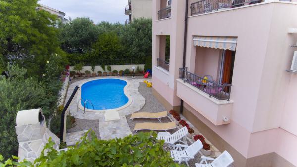 APARTMÁNY BOJKA - nový dům s bazénem, s luxusními apartmány se nachází ve městě Promajna, v ulici Obala 24 C, v centru města, cca 90 m od hlavní pláže. Kromě ubytování v exkluzivně zařízených apartmánech můžete využít i bazén u domu. Všechny kuchyně jsou moderně vybaveny (lednice s mrazákem, sporák, trouba, varná konvice, myčka...), všechny koupelny jsou moderně vybaveny (žehlička se stolem, pračka, fén...). V každém apartmánu je zdarma wi-fi internet. Štítky aplikace jsou: Bojka 1, 2, 3, 4, 5 a 6. Každý apartmán má jedno bezplatné parkoviště u domu. Na dvoře domu je gril pro všechny hosty a stůl vedle grilu. Po celou dobu se v objektu zdržuje hospodyně, která se o hosty stará.