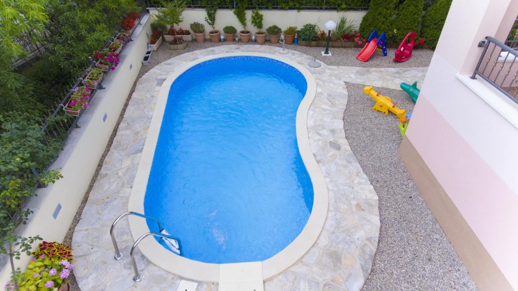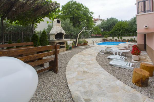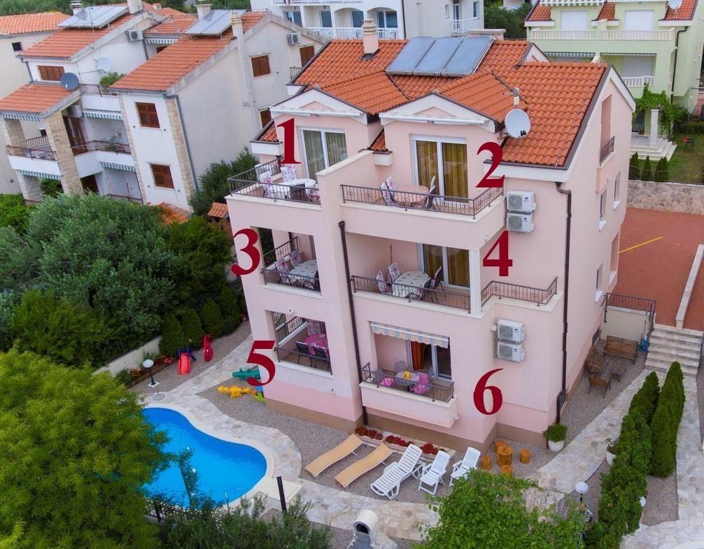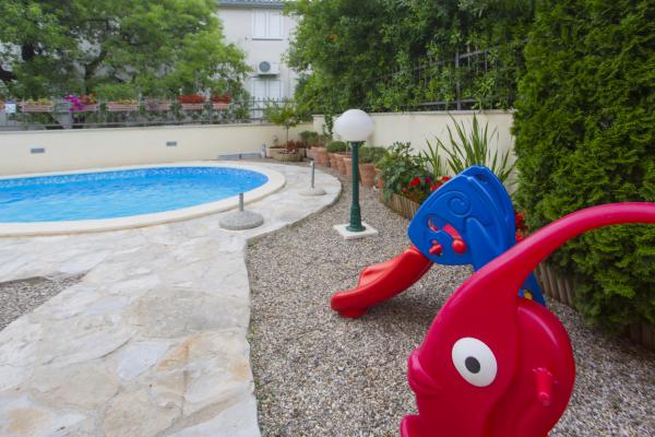 - Apartmány "Bojka" (ulice "Obala 24 C") zahrnují použití společného bazénu a grilu se stolem a lavicemi, dětskými postýlkami a krmítky v případě potřeby, 1 parkoviště/auto,