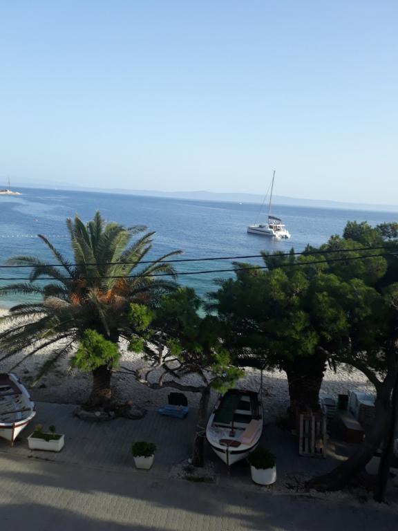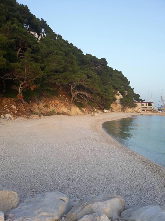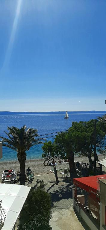 Skvělý byt s velkým balkonem a krásným výhledem na moře na klidném místě! Pokud jste na aktivní dovolené nebo na procházce, máte to 1 km na Promajnu, 4 km na Bašku Vodu a 5 km na Makarskou.