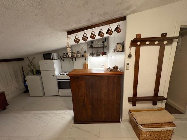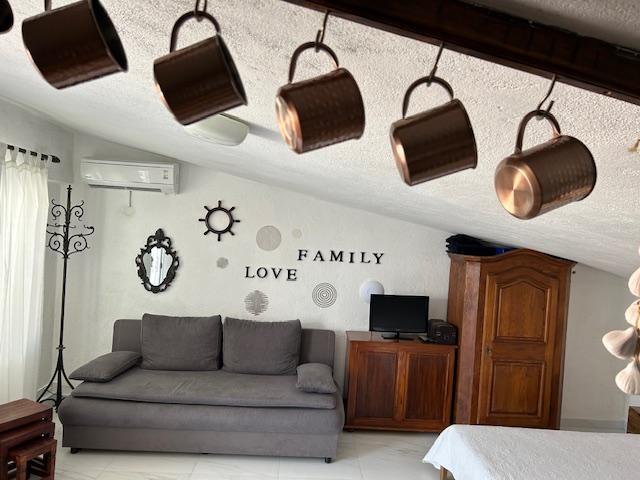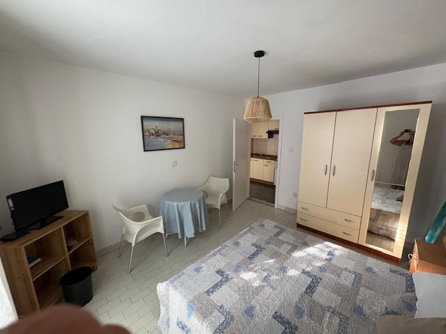 Je to plýtvání penězi a časem na promarněnou dovolenou. Apartmán A5 je starý, s prasklinami, dírami ve dveřních zárubních a hmyzem, který z něj lezou ven. Po zásahu jsme dostali repelent proti hmyzu! Terasy jsou průchozí, s okny sousedů venku. Postele a ložní prádlo jsou staré. V koupelně je sprchový závěs, takže při mytí všechno zmokne. V kuchyni není prostor cokoli dělat; když krájíte chleba na stole, všechno spadne. V malém pokoji je jedna televize (8 kanálů), prach ve skříňkách a páchnoucí koberce z 90. let. Klimatizace funguje, ale proudění vzduchu je špatné. Když odcházíte a snažíte se zavřít dveře, kape vám voda na hlavu. Parkování je 200 metrů od domu. Dům se nachází na kopci, takže je boj se tam dostat.
