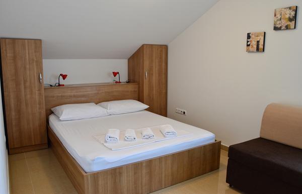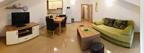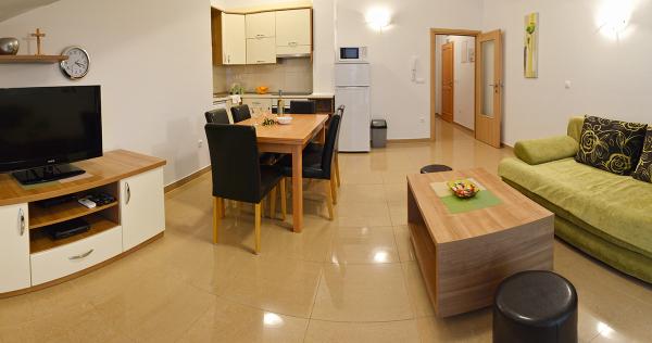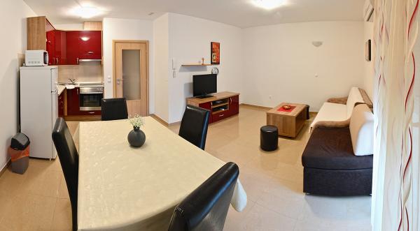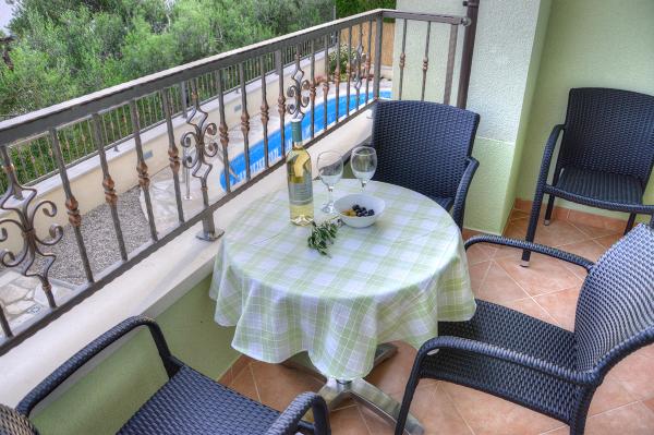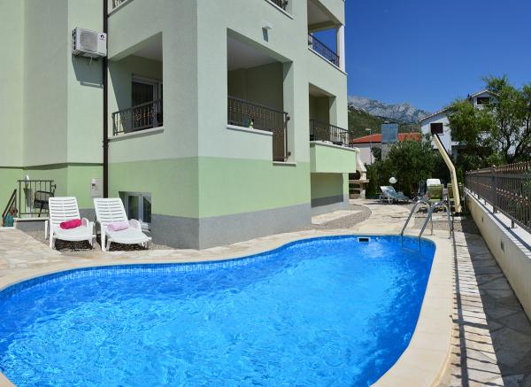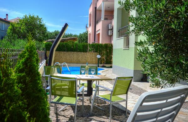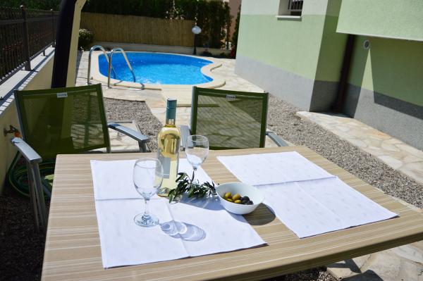 Byli jsme ubytovaní v apartmánu 2+2 v suterénu. Vše bylo krásně čisté, nové, plně vybavené. Vyšli jsme po schodech a mohli skočit rovnou do bazénu. Bazén byl krásný, čistý. Paní domácí moc milá. Moře blízko, 3minuty chůze od domu. Vše na 1*. Moc rádi se sem vrátíme!