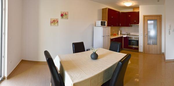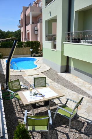 Všechny apartmány jsou nové a luxusně vybavené. Vedle domu je bazén. Apartmány se nachází 60 metrů od pláže.