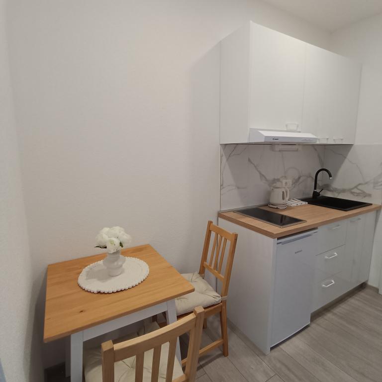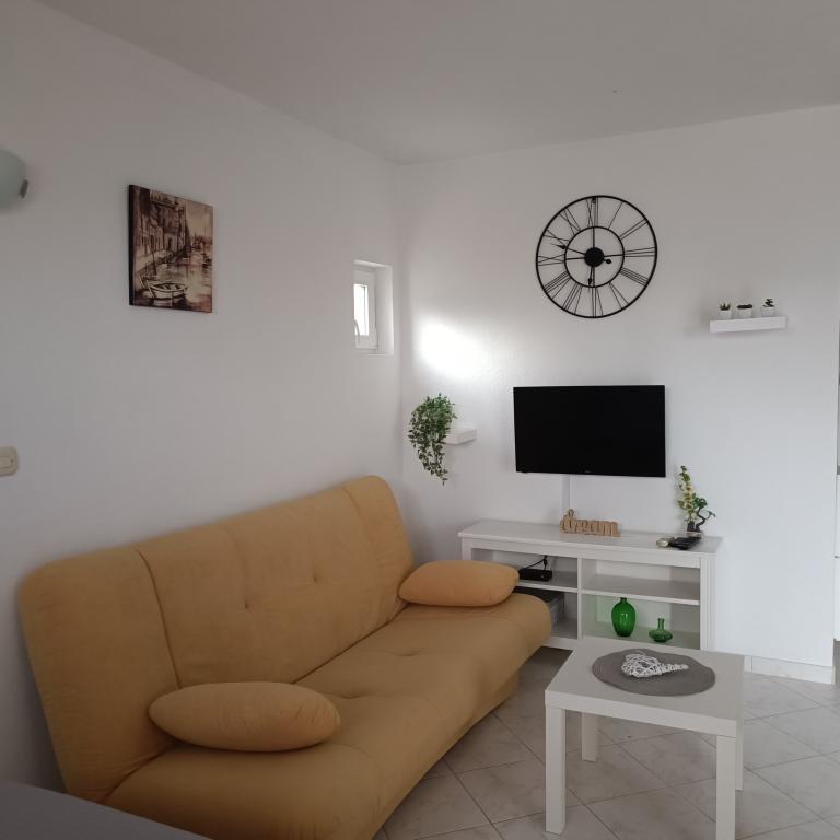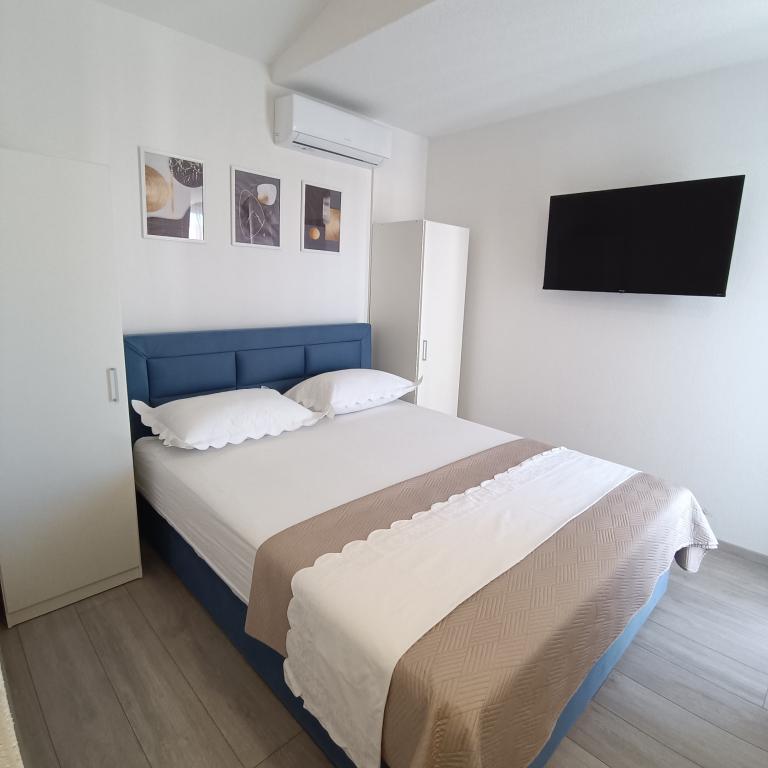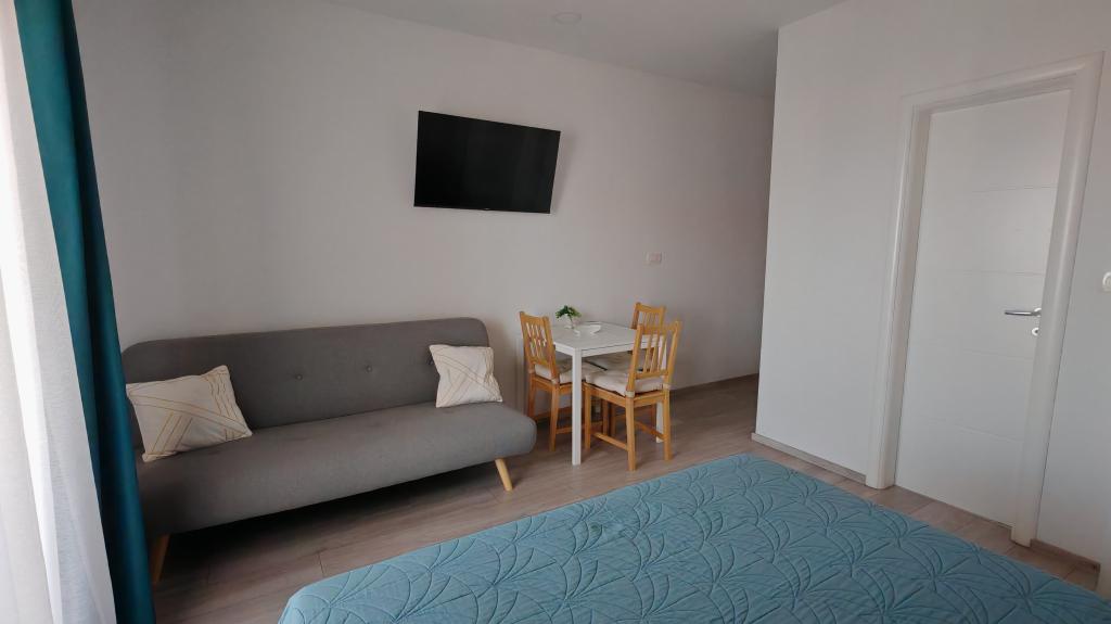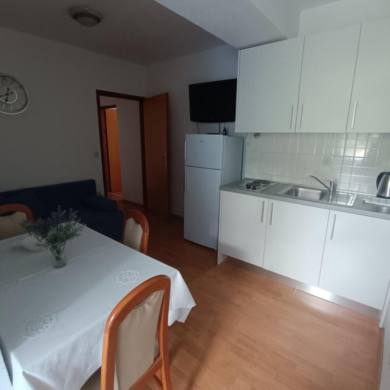 Bydleli jsme ve dvoulůžkovém pokoji s koupelnou, plně vybavenou kuchyní a balkonem s bočním výhledem jak na moře, tak na hory. Pokoj byl velmi čistý a uklizený, bez výhrad. Majitel byl k dispozici na místě, velmi komunikativní a ochotný nejen v otázkách ubytování, ale také poradil, kde se dobře a levně najíst, kde koupit nejlepší domácí olivový olej atd. Příští rok se tentokrát určitě s přáteli navštívíme.