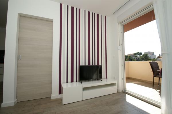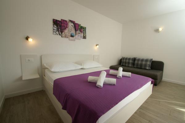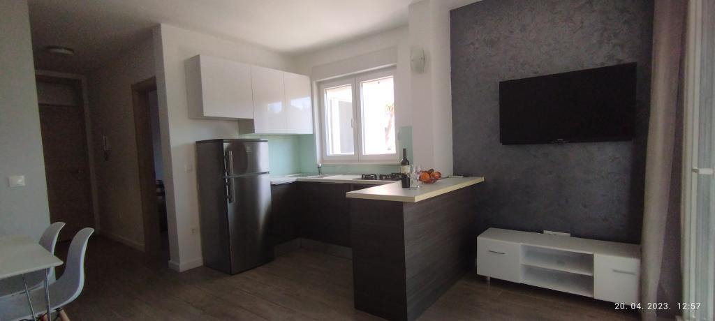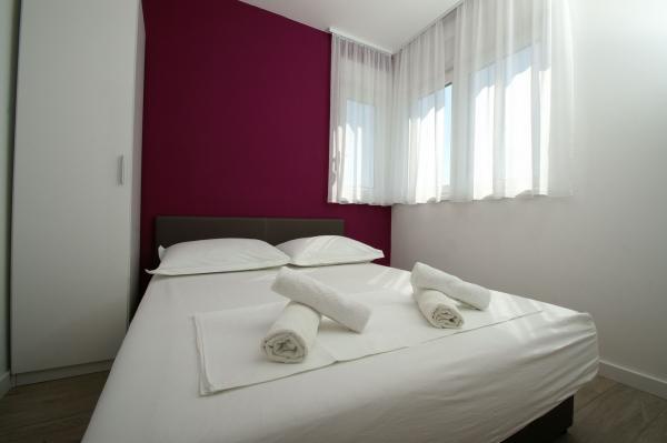 Apartmány v nově postavené budově, 60 metrů od krásné oblázkové pláže s přírodním stínem. Apartmány jsou plně vybaveny pro Váš příjemný pobyt. Parkování je zajištěno ve dvoře objektu. Všechny apartmány mají otevřený výhled na moře. V blízkosti se nachází trh se zeleninou, pekárna a trh. Pláž je vzdálená 80 metrů nebo 2 minuty chůze.