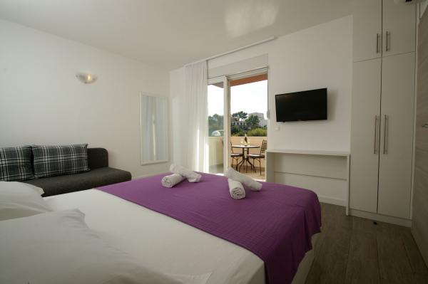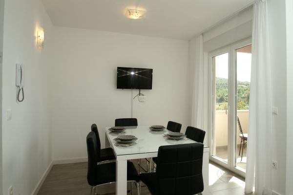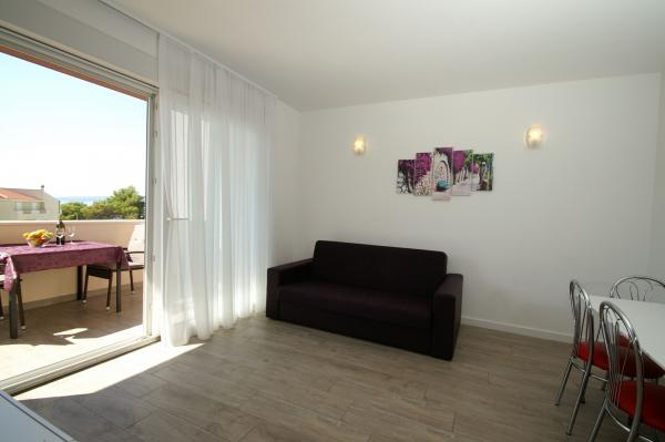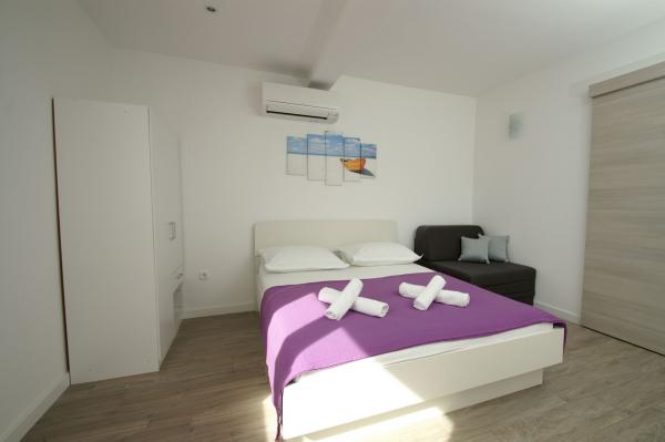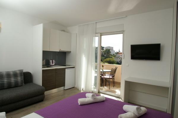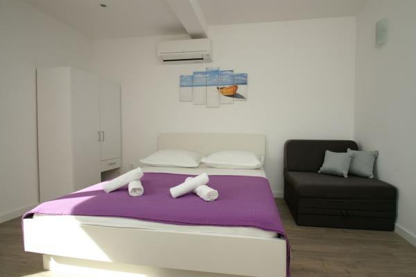Signál Wi-Fi v bytě je velmi špatný a připojení k internetu je do značné míry nedostatečné. Neexistuje ani žádný mobilní internet HT (žádný signál). Přestože je inzerována jako prostor pro 3 osoby, je to ve skutečnosti studio pro 2 osoby, protože pomocné lůžko je vlastně tvrdá a nepohodlná pohovka a spí na stejném rovném mučení a ne odpočinku. Kuchyně je velmi skromně vybavená kuchyňským nádobím a kuchyňským nádobím. Stůl a židle jsou pouze na terase. Celkově je toto studio vhodné pro dva lidi, kteří potřebují místo pro spánek a oběd a kteří si během své dovolené nevybývají nic. Cena bytu je však pro takovou nabídku naprosto příliš vysoká. Určitě největším mínus tohoto bytu jsou jeho hostitelé se zaměřením pouze na peníze, zatímco spokojenost hostů je zcela bezvýznamná. Domicil Dijana je nesmírně zběsilý a neprofesionální.