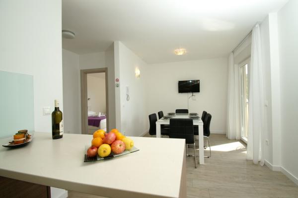 Přátelští hostitelé, prvotřídní byt, moderní, velmi čistý. Plná, dostatečná výbava. Mírný sjezd, blízko pláže a velmi čisté moře. Klidné a tiché okolí bez hluku z ulice. Vřele to doporučujeme.