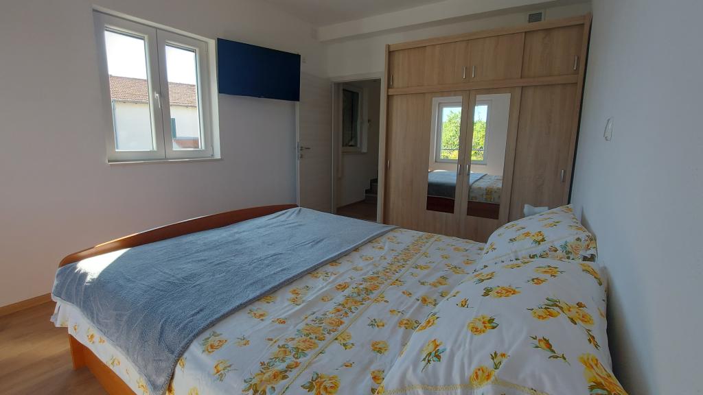 Apartmán, respektive první patro domu, má jednu ložnici s manželskou postelí, další pokoj se 2 samostatnými lůžky a pohovku v obývacím pokoji. K vybavení patří klimatizace, satelitní TV, myčka nádobí, pračka, DVD, neomezený Wi-Fi internet, kuchyň se sporákem, malou lednicí a větší s mrazákem, kávovar, mikrovlnná trouba, rychlovarná konvice... Terasa o rozloze přibližně 4 metrů čtverečních má stůl a 4 židle. Pokud jste již v Šepurině byli, nacházíme se v blízkosti velkého kostela, 100 metrů od moře. Apartmán je 5 minut od centra, takže jste dostatečně daleko, abyste neslyšeli hluk z kaváren a davů. Pokud přijedete autem, můžete zaparkovat v Srimě, kde je parkování zpoplatněno 5 eur na den. Pokud přijedete do Vodic nebo Srimy, musíte si zavolat taxi a my vám poskytneme kontaktní informace. Pokud přijedete do Šibeniku, pravidelná lodní linka trvá 1 hodinu do Šepuriny a jízdu umocňuje plavba lodí krásným kanálem sv. Antonína a ostrovy, které zdobí Šibenické souostroví. Cesta autem z Vodic trvá 15 minut a do Srimy 5 minut.