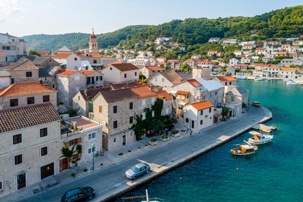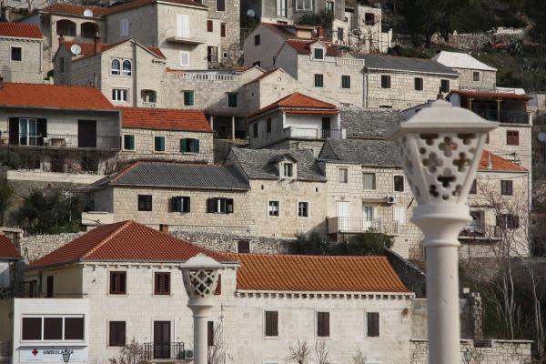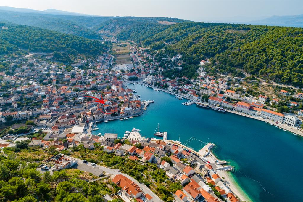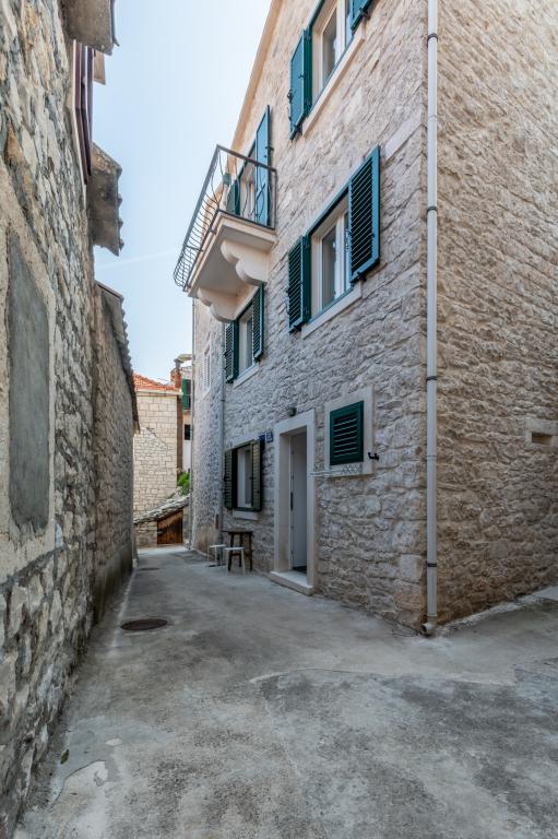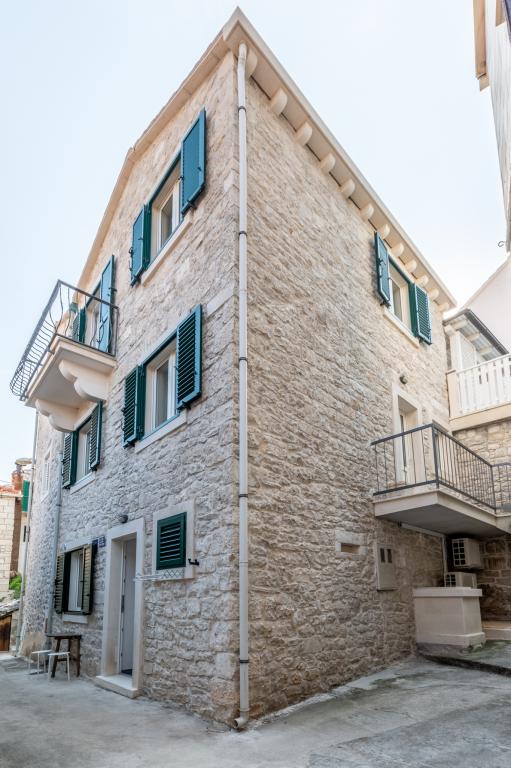 Dům z kamene v klidné lokalitě Pucisca, které druhé řadě od moře, v blízkosti pláže, restaurací a obchodů, s krásným výhledem na moře, na nábřeží a centra města. Dům má dva plně vybavené apartmány, které lze pronajmout samostatně i společně.