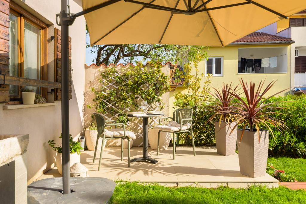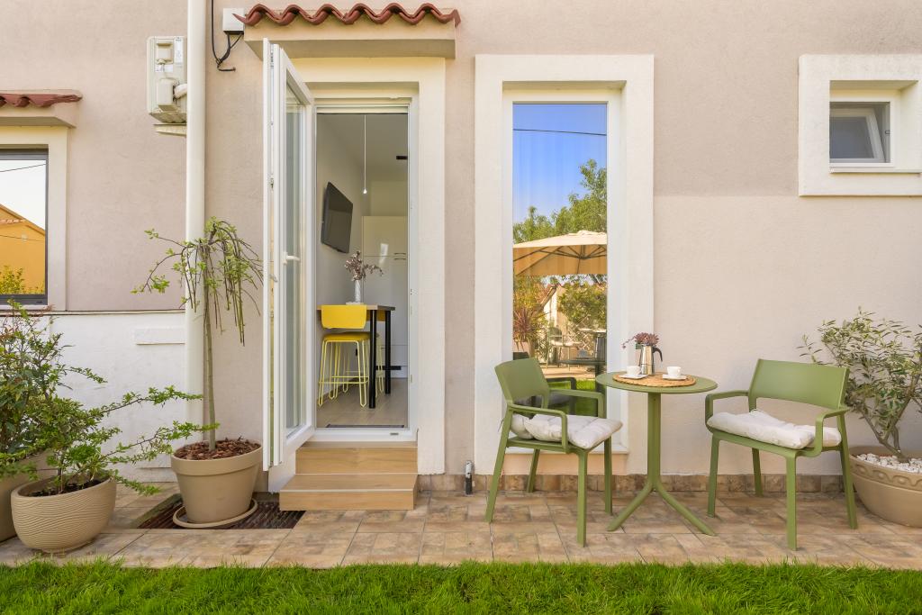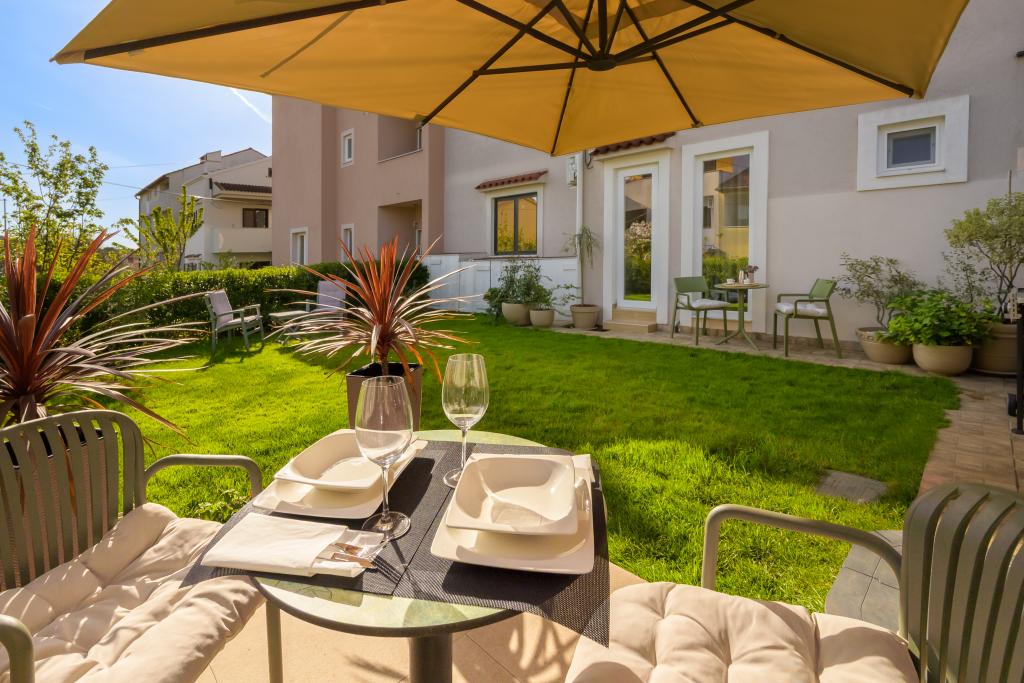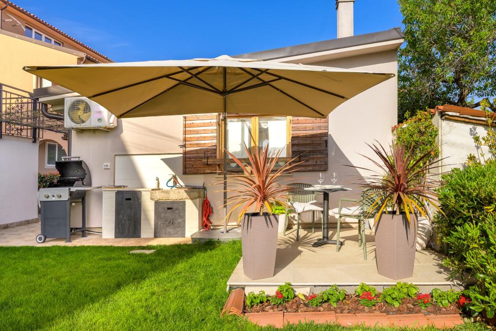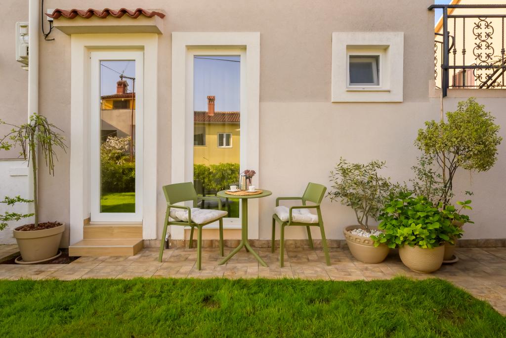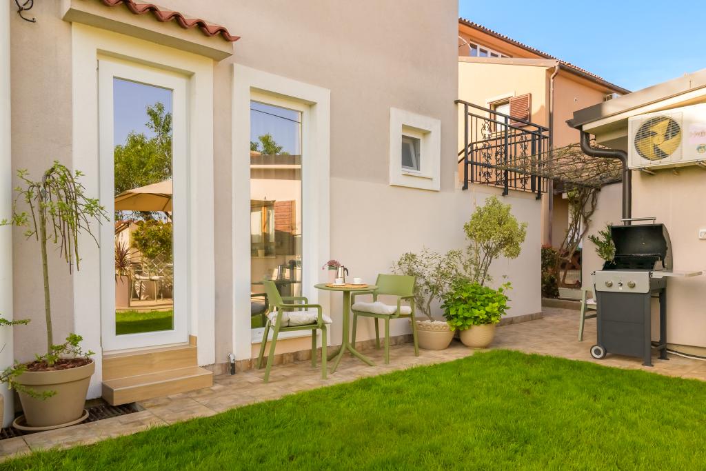 Apartmán se nachází v přízemí rodinného domu a pronajímá se výhradně jako jediný apartmán. Apartmán je nový, plně vybavený...myčka, trouba, kávovar, toustovač, varná konvice, pračka a sušička, příbory... Každý detail v apartmánu byl pečlivě a s láskou zařízen, aby vám poskytl maximální pohodlí a umožnil vám užít si dovolenou. Apartmán má krásnou zelenou terasu, obklopenou živým plotem, který vám poskytuje soukromí a klid. Vaše první ranní káva bude chutnat mnohem lépe na zelené trávě a v klidné oáze se zpěvem ptáků a štěbetáním cvrčků. Když dostanete hlad, máte k dispozici také velký nový gril pro přípravu lahodných jídel. Vaše auto je v bezpečí na bezplatném parkovišti v domě. Apartmán se nachází v klidné části centra města, obklopen rodinnými domy. Všechny památky města Puly, stejně jako nákupní centra, lékárna, nemocnice, restaurace, kavárny, jsou vzdáleny 100 až 900 metrů a vše můžete navštívit poklidnou procházkou, bez nutnosti používat auto.