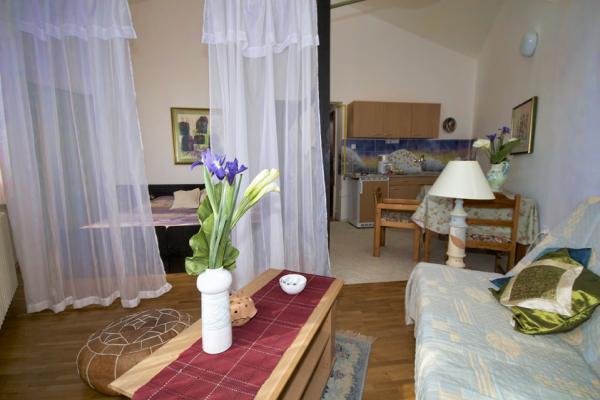 Funkční a plně vybavené apartmány s uměleckou výzdobou. Ideální pro páry nebo malé rodiny. V blízkosti pláže, 5 minut pěšky. Vilová čtvrť Puly. Pekařské, obchody, přístav, restaurace v blízkosti.