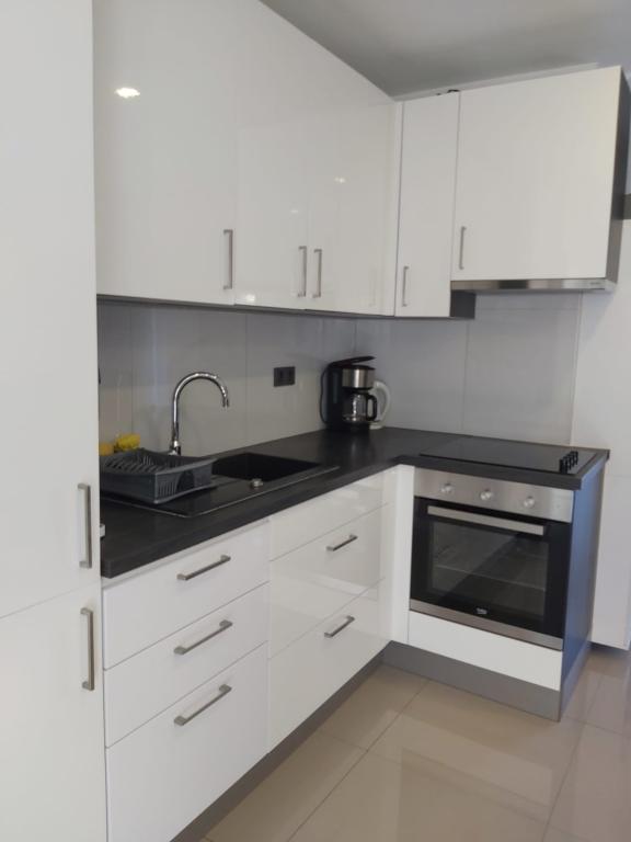 Nové a moderně vybavené apartmány v klidné oblasti, ve třetí řadě od moře; Nemovitost se nachází 2 minuty chůze od centra a 5 minut chůze od pláže. Vím, že podél pláže jsou restaurace a další služby pro hosty. Sportovní aktivity lze provozovat s doprovodným vybavením umístěným přímo u pláže. A také dětské vychytávky pro zábavu a hraní. Poznámka. Pláže jsou v noci osvětlené barem, kde si hosté mohou užívat a relaxovat u moře.