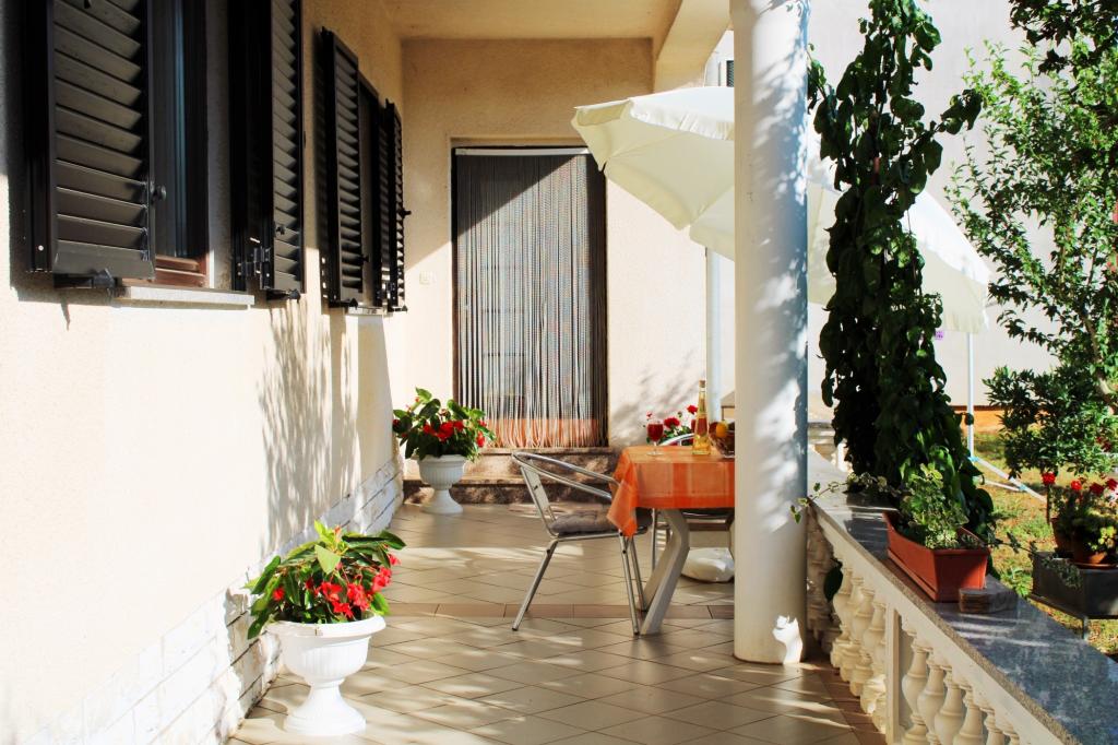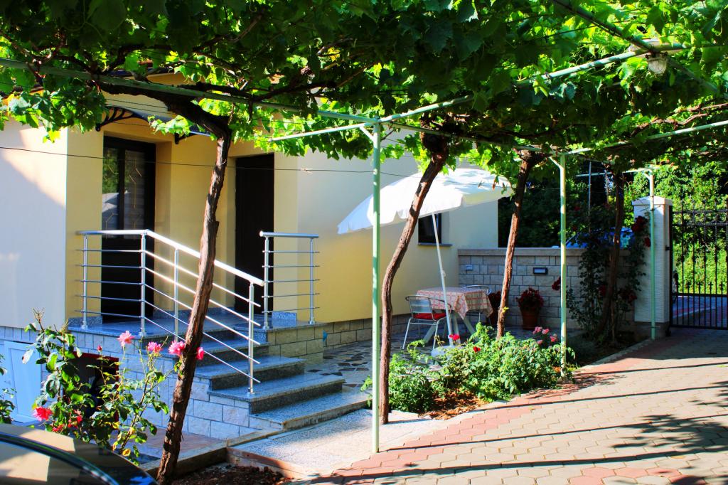 Rodinný dům, který má dva byty k pronájmu, jeden pro 4-5 osob a jeden pro dva. Oba apartmány se nacházejí v přízemí. Byt pro 4-5 osob je prostorný, světlý a pohodlný se dvěma ložnicemi, kuchyní, jídelnou, obývacím pokojem, koupelnou a terasou. Byt je klimatizovaný, má wifi a všechny domácí spotřebiče. Hosté mohou využívat terasu s výhledem do zahrady a do dvora a využívat gril. Apartmán pro dvě osoby má manželskou postel, kuchyň, koupelnu a terasu. Ideální poloha, 3 minuty autem na parkoviště v centru města a 3 minuty autem na pláž. Domácí zvířata nejsou povolena.