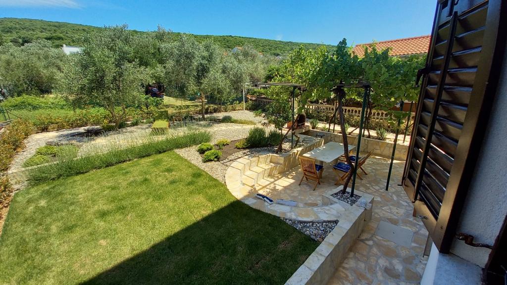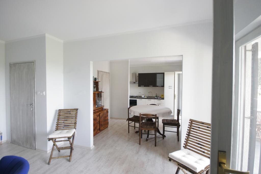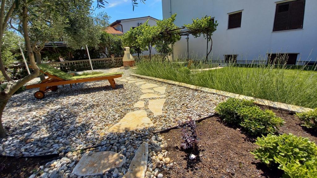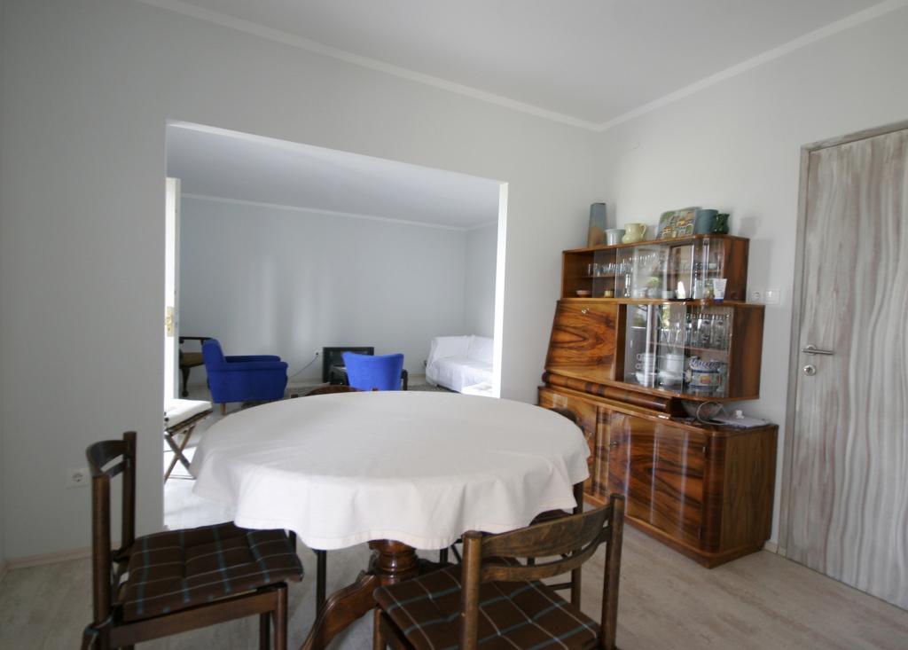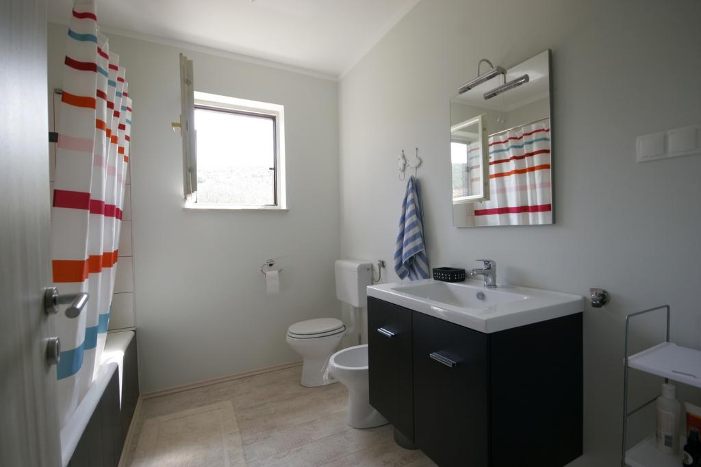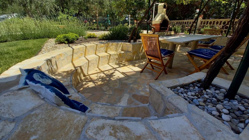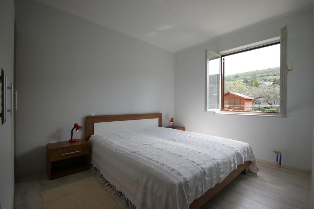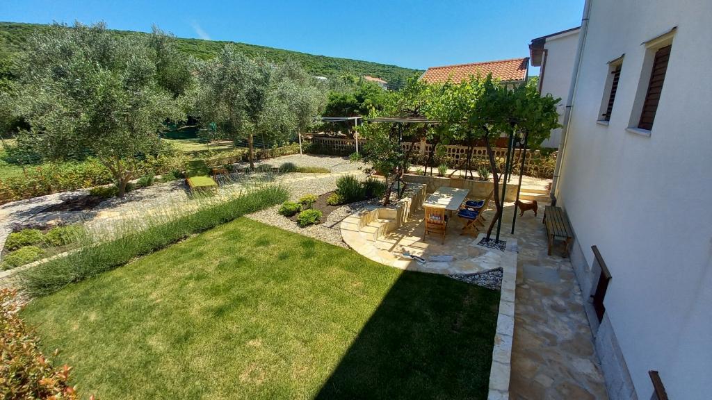 Nově zrekonstruovaný, prostorný byt o rozloze 100m2 se nachází v prvním patře rodinného domu. Skládá se ze 2 ložnic, 2 koupelen, kuchyně s jídelnou a prostorného obývacího pokoje, kde je možné rozložit pohovku na přistýlku. Z kuchyně a obývacího pokoje je východ na velký balkon-lodžie. V zadní části domu je nově zrekonstruovaná zahrada s grilem a lehátky a solární sprchou. V blízkosti bytu je supermarket a moře je asi 500 m od centra Punatu je 10 minut chůze.