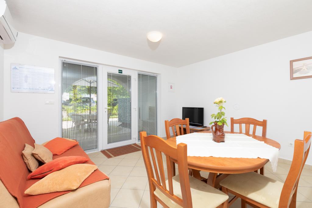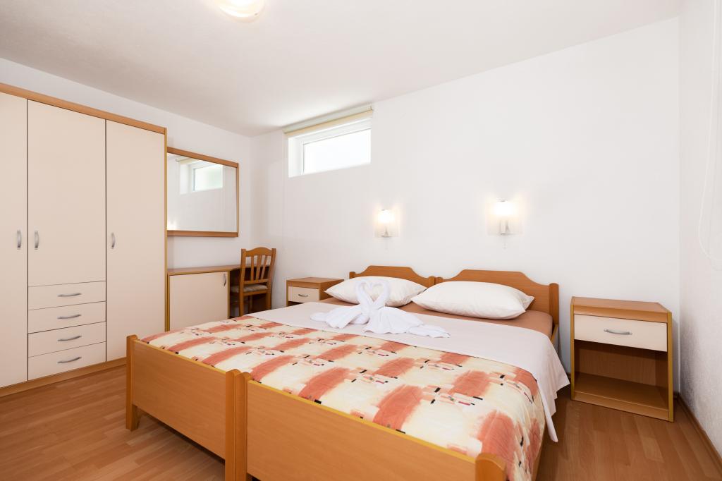 Ubytovací jednotkyPro rezervaci je nutné uhradit zálohu ve výši 100 € prostřednictvím banky (IBAN) a zbytek účtu se platí v hotovosti při příjezdu. Příjezd do apartmánu je možný po 14 hodině, odjezd do 10 hodin. Základní cena v apartmánu je za 2 osoby. Za každou další osobu na přistýlce se cena zvyšuje o 12 €/den (1. května-14. července, 21. srpna-30. září) nebo 15 €/den (15. července-20. srpna). Každý apartmán má přistýlku pro 2 osoby. Děti do 3 let mají pobyt zdarma, pokud nevyužijí přistýlku. Při pobytu do 3 nocí se cena služby zvyšuje o 30 %. Pobytová taxa je zahrnuta v ceně.