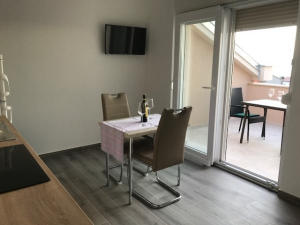 Byt a celý dům jsou velmi elegantní. Všechno je nové a čisté, byt má vše, co potřebujete, od nádobí po ruční mýdlo, kartáč, koště ... Terasa je super praktická. Pláž a centrum města jsou blízko. Také jsme měli místo pro uklízení kol. Paní. Mirjana je skvělá, hostila nás pěkně.
