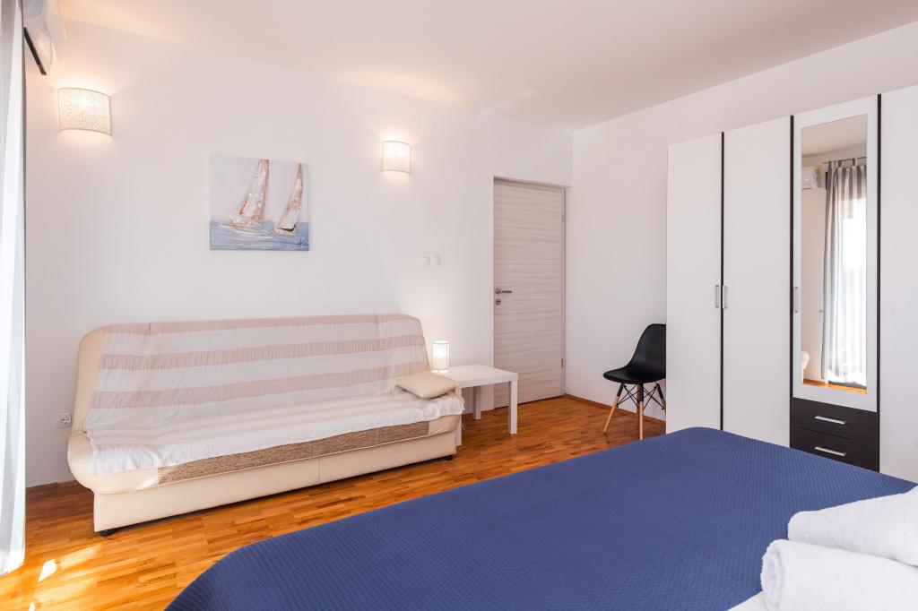 V apartmánu je ložní prádlo a ručníky. Během pobytu můžete využívat společný bazén (sladkovodní 5x3, hloubka 1,2 m). Bazén není vyhřívaný. Možnost využití společného grilu. Za příplatek je povoleno vzít si do ubytovací jednotky domácího mazlíčka. V domě se nachází další apartmán, kde se pravděpodobně budou během vaší dovolené ubytovávat další hosté. Během vašeho pobytu budou pravděpodobně v domě i hostitelé. Obsah apartmánu mohou využívat pouze osoby, které jsou registrovány jako hosté, a hostitel může na žádost hosta schválit případné návštěvy v určitém čase.