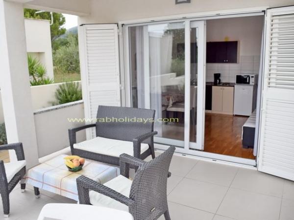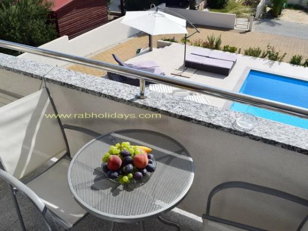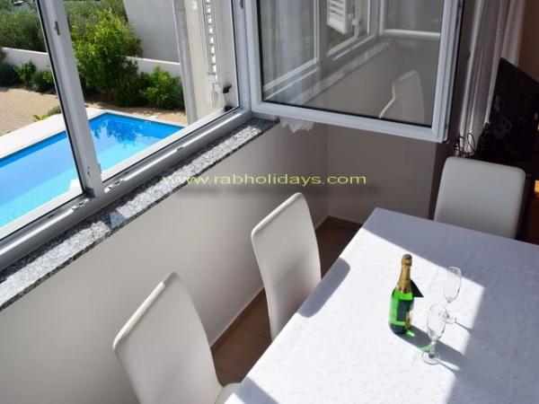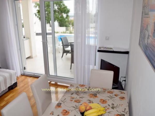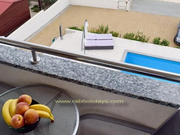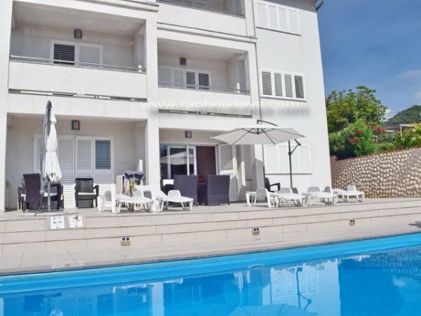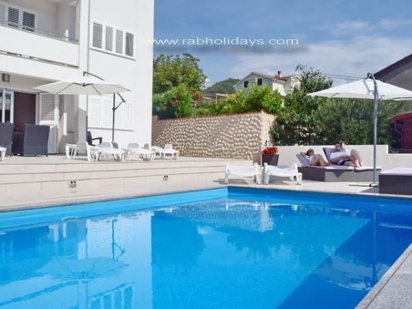 Dům \\ Villa Marija \\ s výběrem prostorných apartmánů se nachází na ostrově Rab v Banjolu. Apartmány vily Marija se nacházejí v klidném a krásném místě, od pláže asi 500 metrů. Čeká na vás pohodlné ubytování v moderně zařízených apartmánech (klimatizace, satelitní TV, gril, terasa s lehátky, výhled na moře, parkoviště). V bytě je také bazén. Úprimně doufáme, že poznáte krásu ostrova Rab a strávíte svou krásnou a příjemnou dovolenou v Banjolu a budeme mít tu čest být vaším hostitelem.