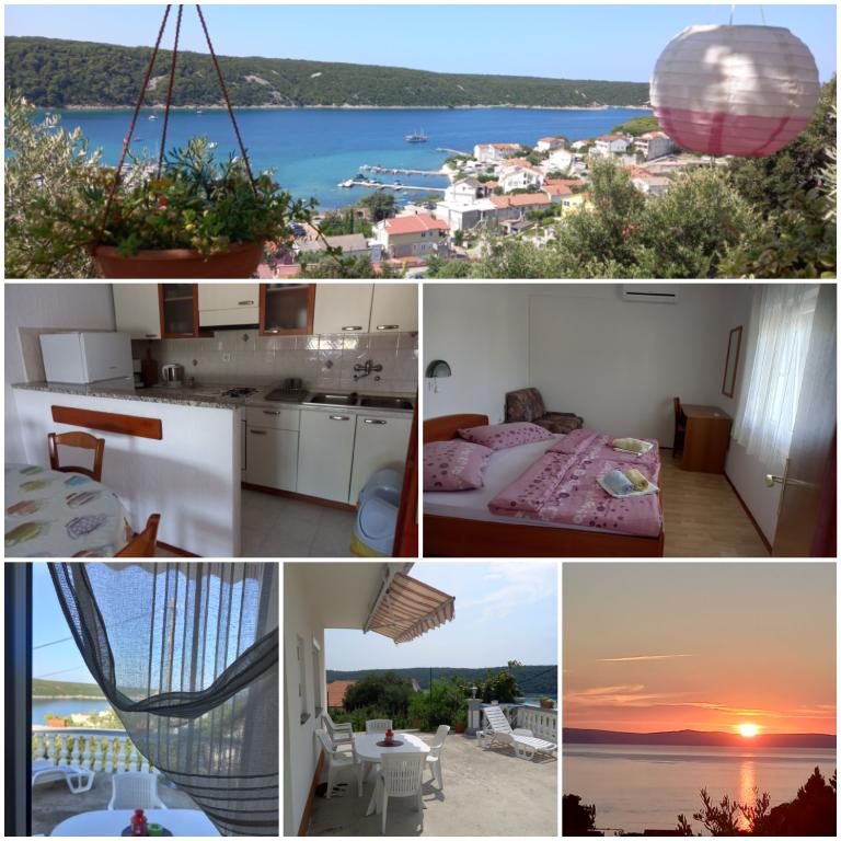 Apartmán pro 4 osoby, cca 300 m od moře a pláže. Kousek na kopci, s výhledem na moře, klid a pohoda, terasa, parkování, gril, wifi, TV, pračka, klimatizace, kotviště pro loď do 7 m.