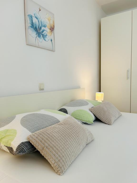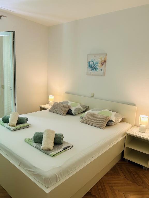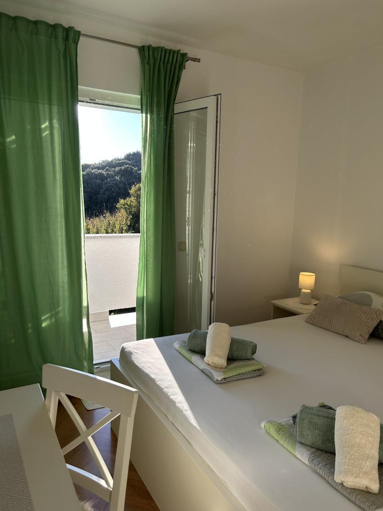 Moderně vybavené apartmány v klidném prostředí. Apartmány se nacházejí v přízemí a v prvním patře. Obsahují obývací pokoj, pokoje s manželskou postelí, kuchyň s veškerým potřebným příslušenstvím, koupelnu a balkon a bezplatné Wi-Fi. V rámci objektu je bezplatné parkoviště a možnost využití grilu. Obchod s potravinami, kavárna a kadeřnictví se nachází 300 metrů od budovy a další zařízení jako restaurace, ambulance, lékárna atd. jsou 5 minut jízdy autem. Nejbližší oblázková pláž je vzdálená 700 metrů, a pokud se přesto rozhodnete prozkoumat trochu více, poloostrov Frkanj, který je plný zátok a pláží, je vzdálený 5 minut jízdy. Staré město Rab je 20 minut snadné chůze podél moře nebo 5 minut autem.