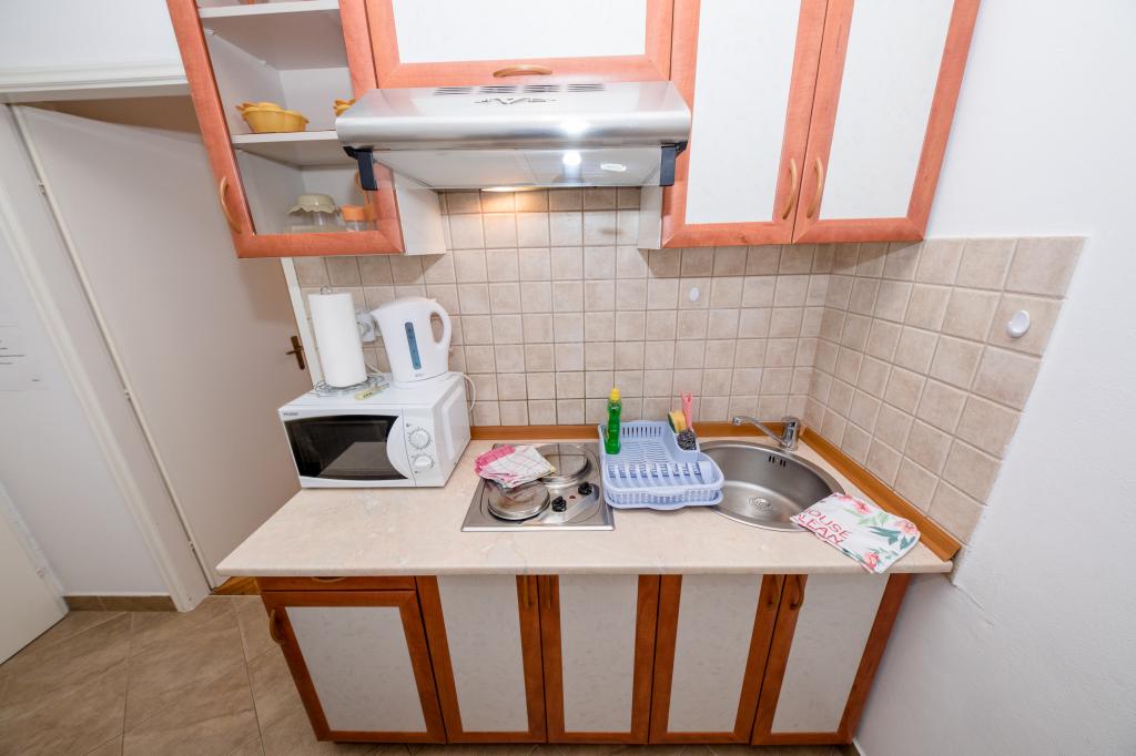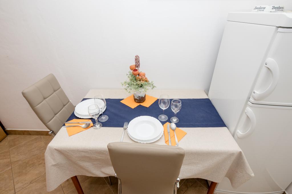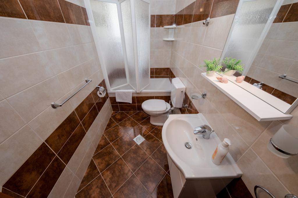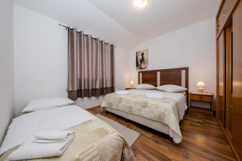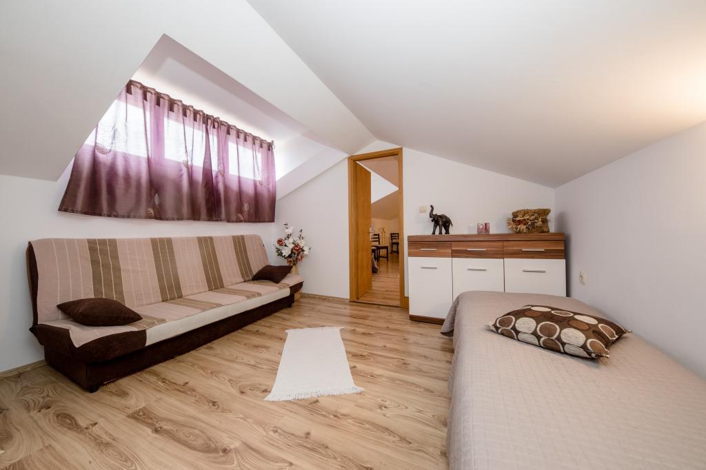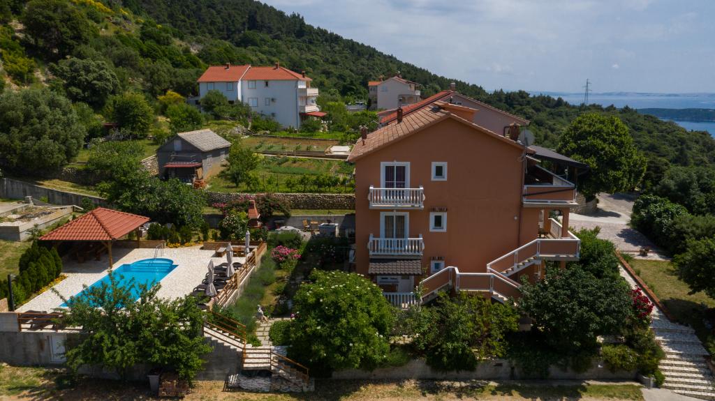 Moderně vybavené apartmány v nadmořské výšce 350 metrů v klidné vesnici v Mundanije na ostrově Rab zvaném Šćerbi. Objekt je vzdálen přibližně 2-3 km od moře, centra a všech ostatních důležitých míst, což je přibližně 10 minut jízdy autem. Poloha budovy nabízí krásný výhled ze všech teras a balkonů na celý ostrov a větší část Kvarnerského zálivu. Klid a nulový provoz našeho města nabízí dokonalou a pohodovou dovolenou v úkrytu přírody a nádherného letního slunečného počasí. U domu je velké parkoviště a za domem je krásně udělaný bazén a vedle něj plocha na opalování.