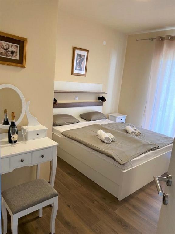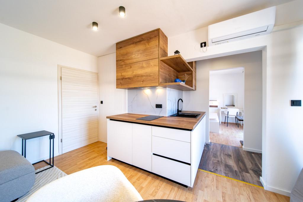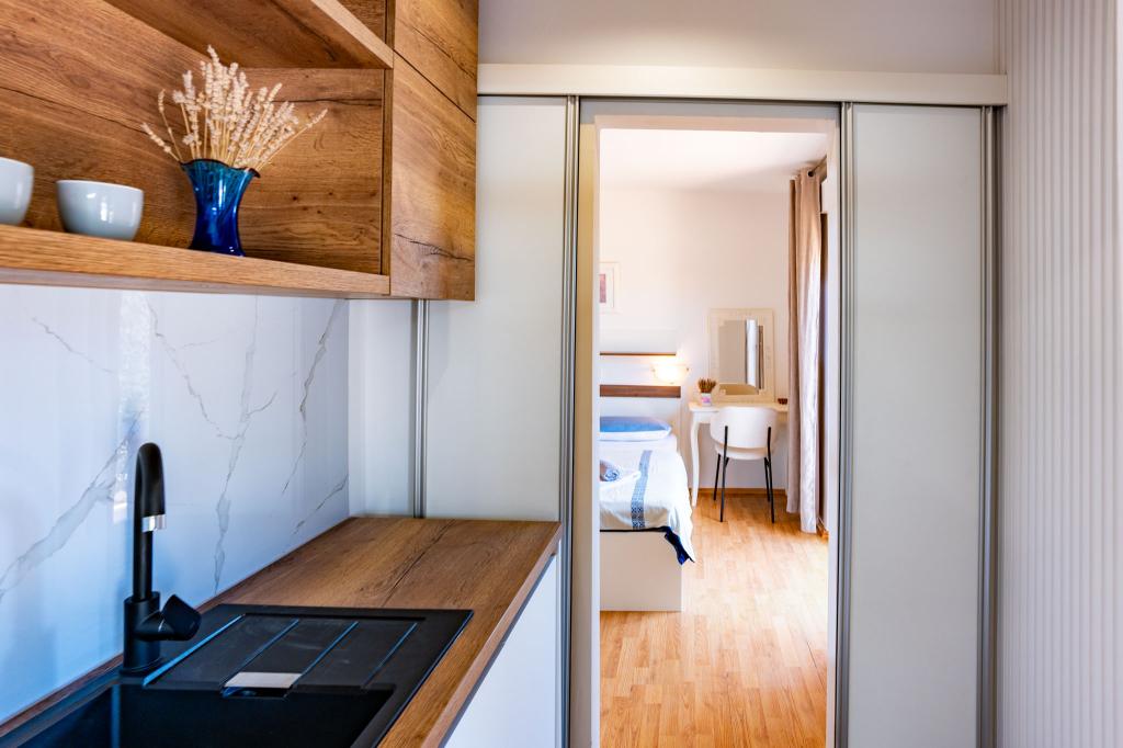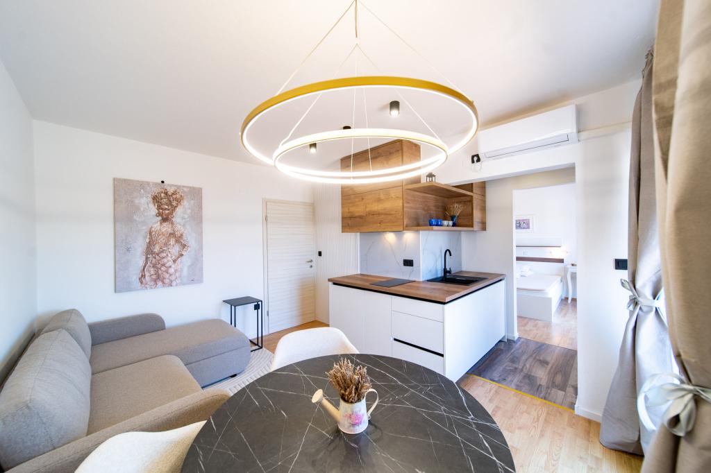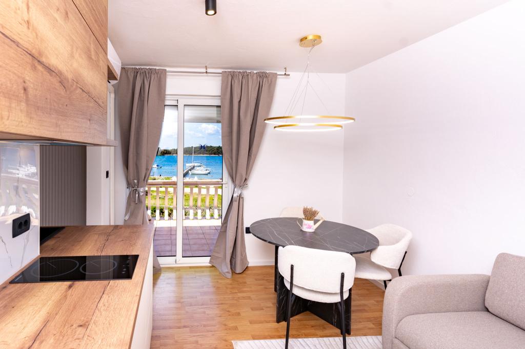 Zařízení se nachází v klidné části ostrova Rab, město Palit Jelikož se nacházíme v první řadě u moře, všechny jednotky, které jsou luxusní a plně vybavené, nabízejí krásný výhled na moře a moře. romantickou zátoku Frkanj, kde si můžete vychutnat kouzelné východy a západy slunce. Dům se nachází pouhých 50 metrů od pláže a 150 metrů od centra Rabu, kam se dostanete příjemnou procházkou po promenádě u moře. Restaurace se také nachází pár minut chůze od budovy. Budovu zdobí také krásná zahrada se zahradou, kde si budete při projíždění moře užívat středomořskou vůni.