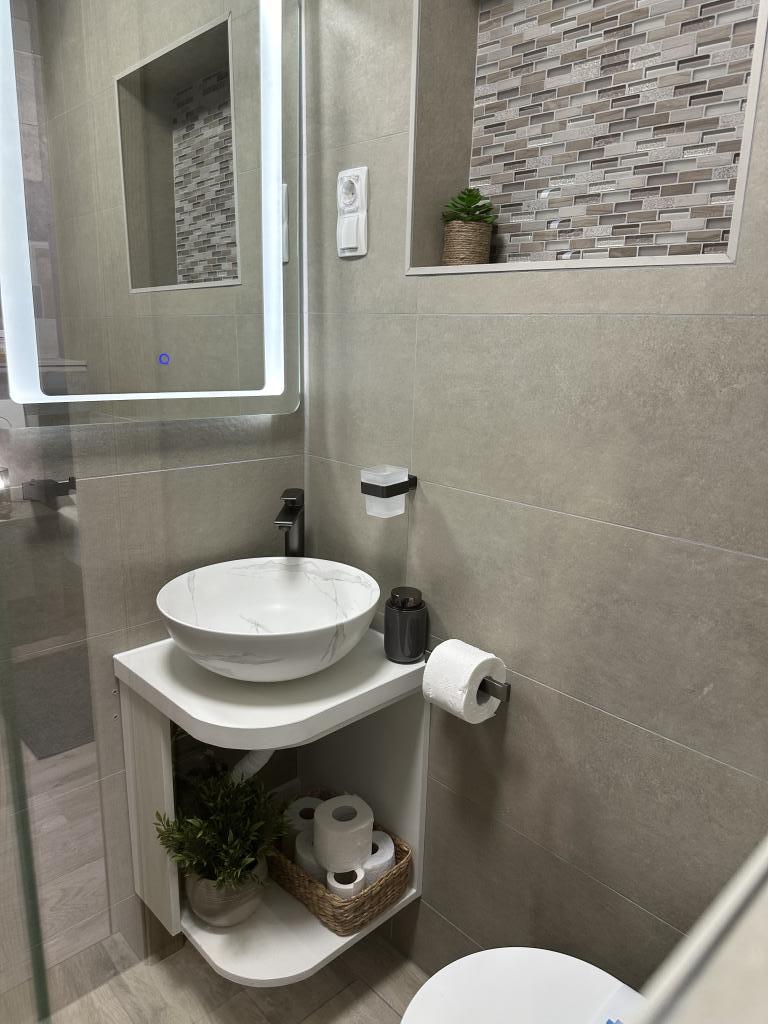 Skvělý byt. Čistá a voňavá. V apartmánu máte vše potřebné: mixér, mikrovlnnou troubu, odšťavňovač... Po příjezdu nás čekalo občerstvení, pití a samozřejmě milá a usměvavá paní Rina. Klidná lokalita, lehátka na pláži. Byli jsme velmi spokojeni.