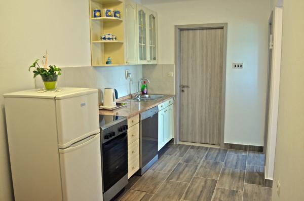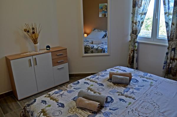 Ubytování a hostitelé jsou vynikající. Apartmány jsou vybaveny vším, co můžete na dovolené potřebovat. Moře je přímo pod apartmánem. Pláž je betonová s lehátky k dispozici. Parkování je zajištěno. Hostitelé jsou velmi milí, vždy k dispozici a připraveni pomoci. Rozhodně doporučuji.