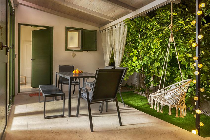 Byt se nachází na samotě ve starší části obce na vrcholu kopce (75 m až 82 m n. m.), takže si užijete klid a pohodu. Od nejbližší pláže je vzdálen 100 m. Dá se k ní dojít pěšky po staré cestě nebo pěšky nebo autem po nové silnici. Kuchyně je moderně vybavená a můžete využít lednici s mrazákem, troubu, myčku, espresso, toustovač, varnou konvici, mikrovlnku. V budově je klimatizace a podlahové vytápění. Koupelna je vybavena pračkou. Byt má dva pokoje. Jeden má manželskou postel a druhý pokoj má dvě samostatné postele, které lze spojit. Můžete si také užívat venku na prostorné terase.