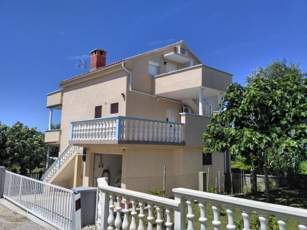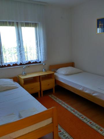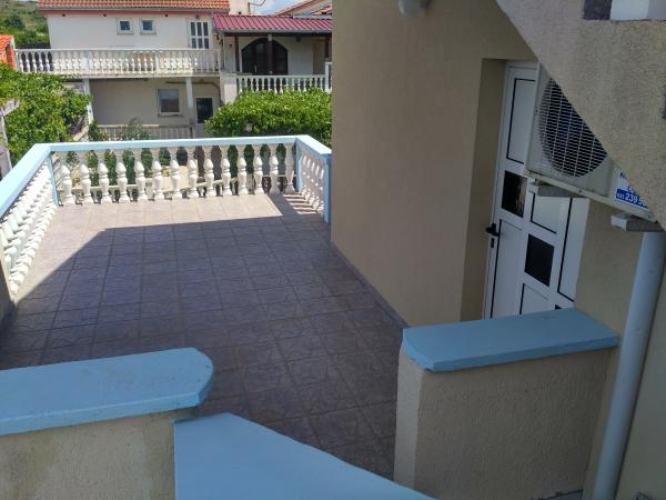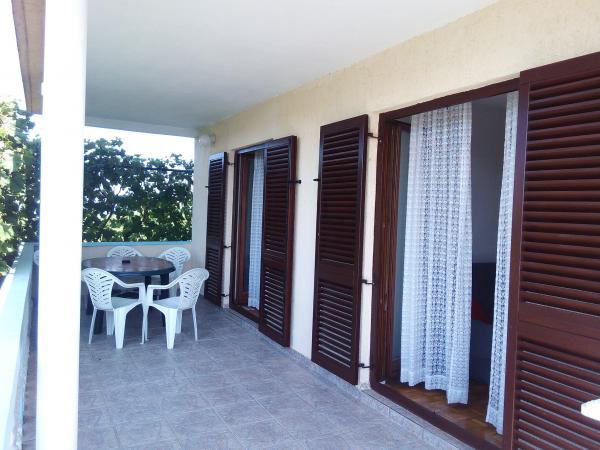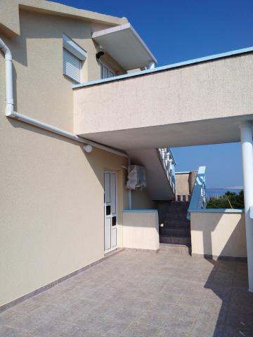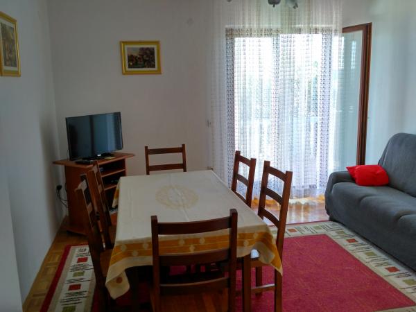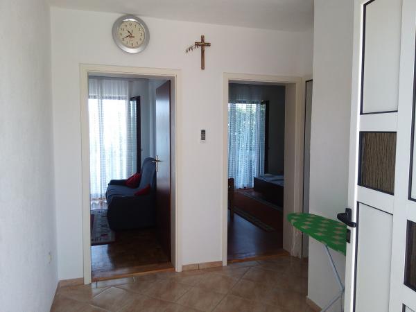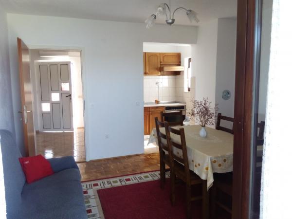 Byt se nachází v domě v prvním patře. Apartmány mají dvě ložnice. V jedné ložnici jsou dvě samostatná lůžka. Druhá ložnice má manželskou postel a další lůžko na straně. Z této místnosti a vstup na velký balkon s výhledem na moře a do centra Miocic Rtina. V obývacím pokoji je sedací souprava (pohovka), jídelní stůl se 6 židlemi a TV. On je také balkon. Kuchyň je propojená s obývacím pokojem a je vybavena nádobím a kuchyňskými potřebami pro 6 osob. Kuchyň je vybavena el.pločom vaření, troubou, lednicí a rychlovarnou konvicí. Koupelna je vybavena standardním sprchovým koutem a el.bojlerom. Byla instalována klimatizace na chodbě. Vchod do bytu s velkou terasou, která může být také použit jako venkovní sprchou a grilem. Na pláž se musíte chodit jen 10 sekund. Vzdálenost do pekárny a restaurace je 400 m, zatímco obchod (mini trhu) a další restaurace 800 m.