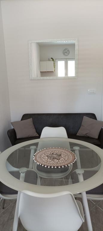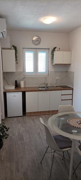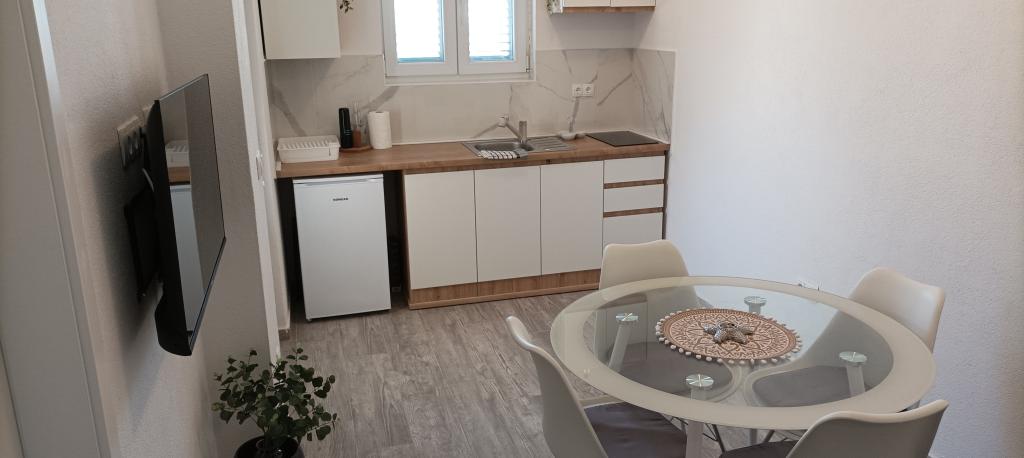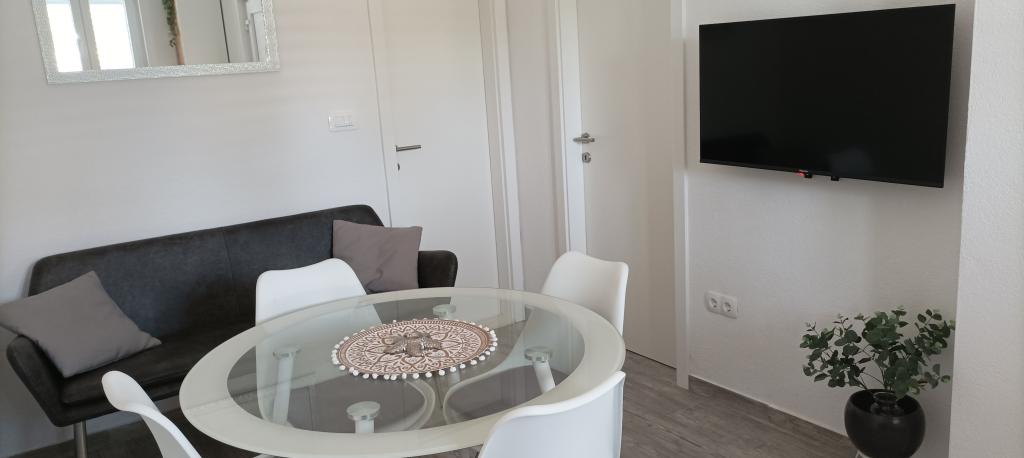 Jedná se o byt v rodinném domě v přízemí. Plocha bytu je 30 m2 a náleží k němu balkon s posezením. Apartmán se skládá z kuchyňského koutu spolu s obývacím pokojem, koupelnou a jedné ložnice s manželskou postelí a jednou pohovkou, kterou lze rozložit na postel pro jednu osobu (v případě potřeby). Je vhodný maximálně pro dvě až tři osoby. K dispozici je bezplatné parkoviště. Vzdálenost od pláže je 200 metrů. V Ražnje je několik restaurací, obchod s potravinami, kavárna a pekárna.