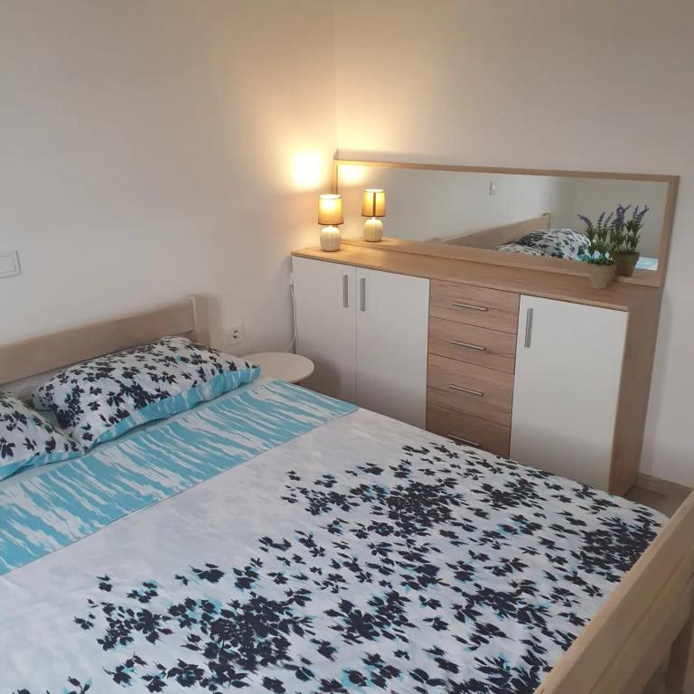 Klidná dovolená s krásným výhledem? Jsme tady :) Byt se nachází ve vesnici Ražanj nedaleko Rogoznice. Celé patro jen pro vás se skládá ze dvou ložnic, kuchyně s jídelnou, koupelny a terasy s krásným výhledem na moře. Parkování je ve dvoře, WiFi zdarma a možnost grilování. Ideální pro čtyři hosty. Pláž je vzdálena pouhých 200 m pěšky. Primošten je vzdálený 20 minut a Trogir 30 minut jízdy autem. Ve vesnici je obchod a několik restaurací, které nabízejí středomořskou kuchyni. Denní rozvoz pekařských výrobků, ovoce, zeleniny a čerstvých ryb před dům.